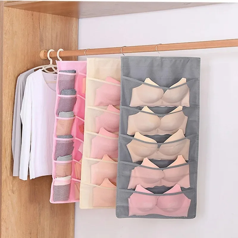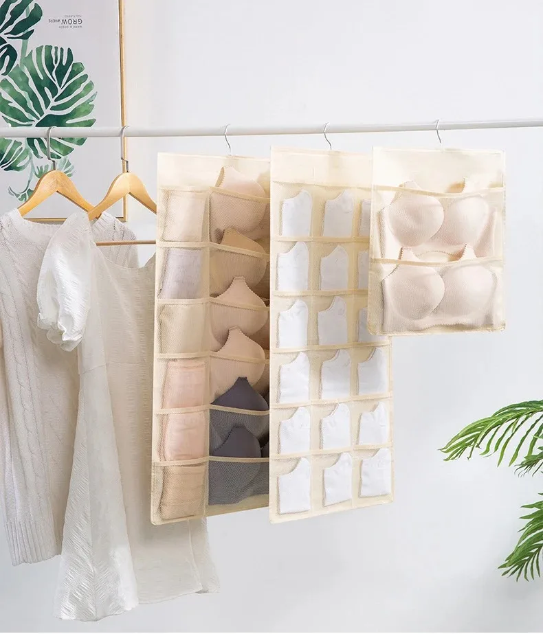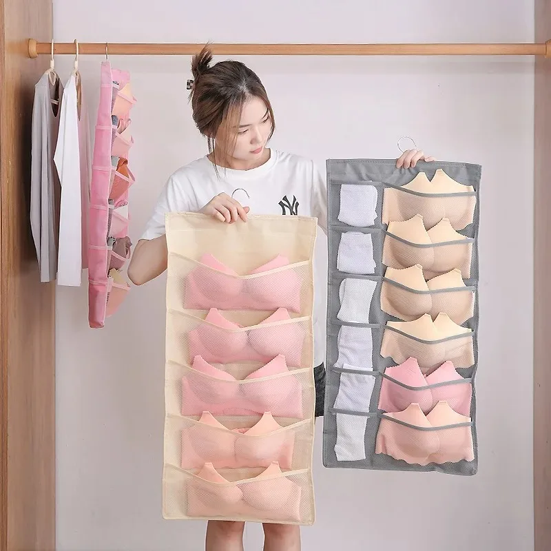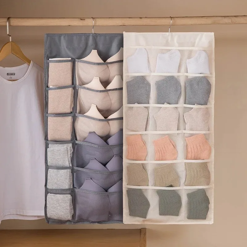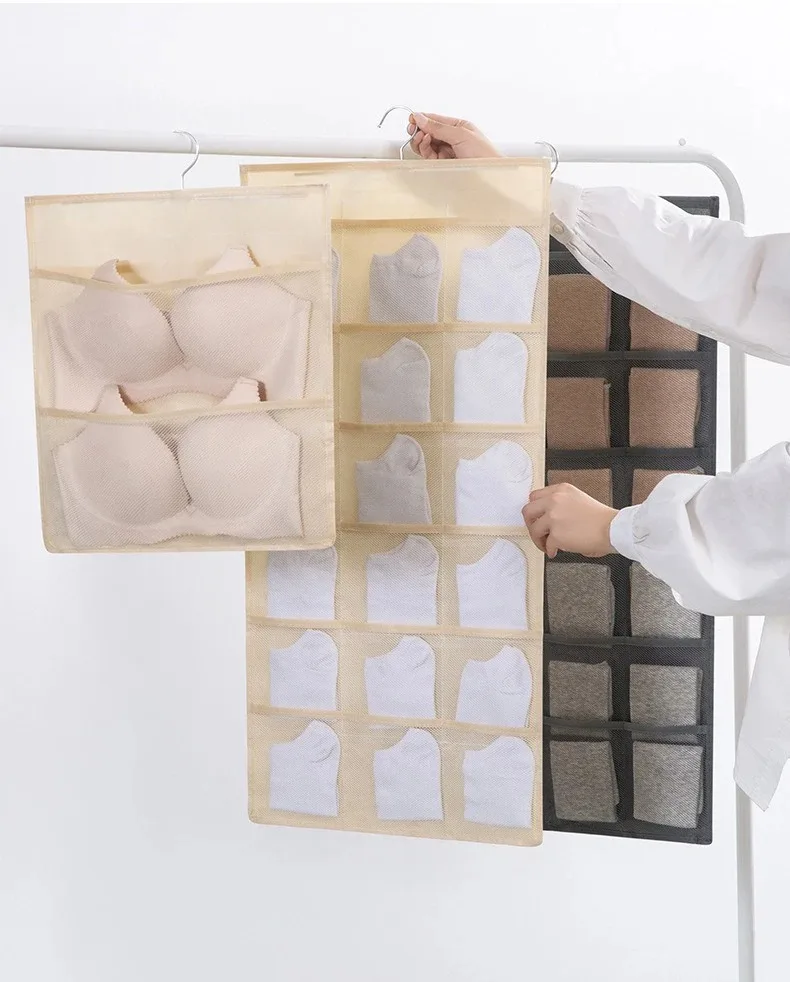 Bolsa de almacenamiento de piezas de ropa interior, organizador de ropa íntima, calcetines colgantes de doble cara, armario de ropa no tejida, organización del hogar, 1 unidad