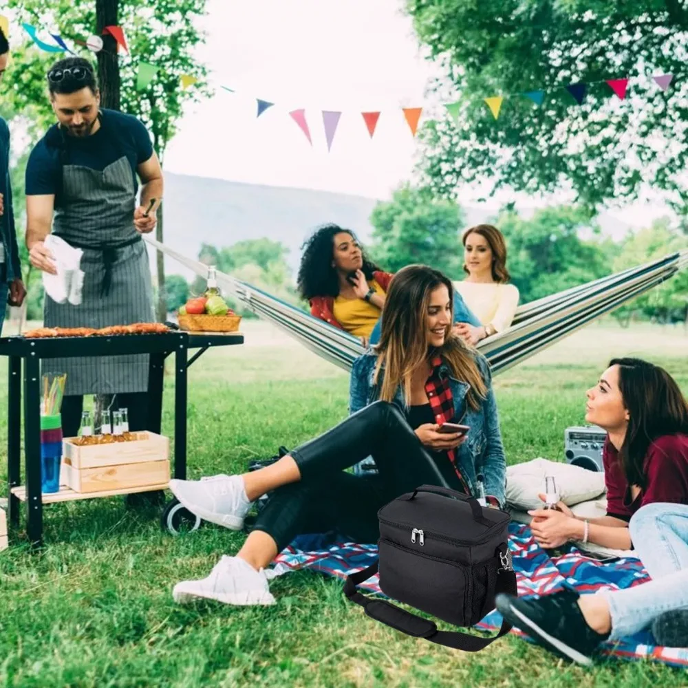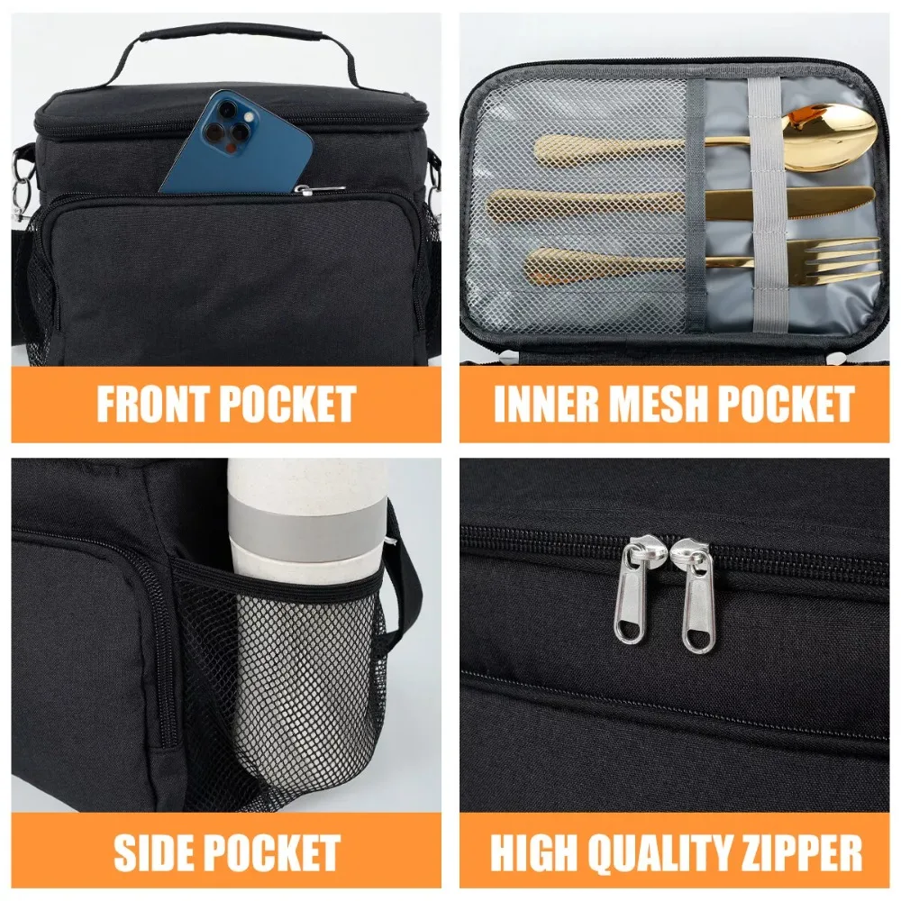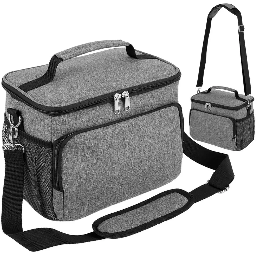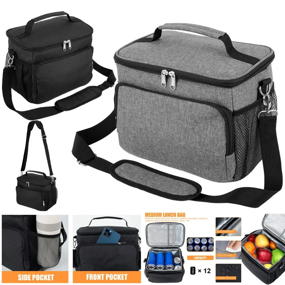 Nombre del producto: Bolsa de almuerzo aislada Material: tela Oxford impermeable + algodón perla + EVA Tamaño: 25,4x17x20,3 cm, rango de longitud de la correa de hombro 38-68,5 cm Función: mantener el calor, mantiene el frío, se mantiene fresco. Color: negro, gris. El paquete incluye 1 * bolsa de almacenamiento para picnic. Nota: 1. Debido al efecto de luz y monitores, los colores pueden tener una ligera diferencia. 2. Permite pequeños errores de tamaño debido a la medición manual. ¡Gracias por su comprensión! 3,1 cm=0,39 ''.