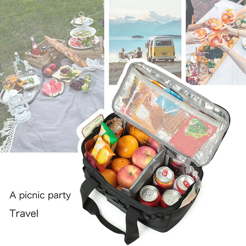 Acampar al aire libre pesca recorrido de conducción automática bebidas de frutas alimentos organizador portátil almacenamiento hombro bolso multiusos