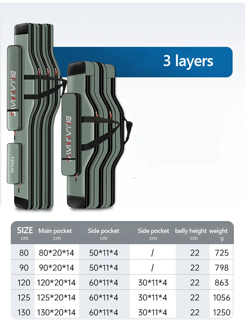 Bolsa para aparejos de caña de pescar, bolsa de almacenamiento de gran capacidad, multifuncional, impermeable, portátil, X626G, 130CM