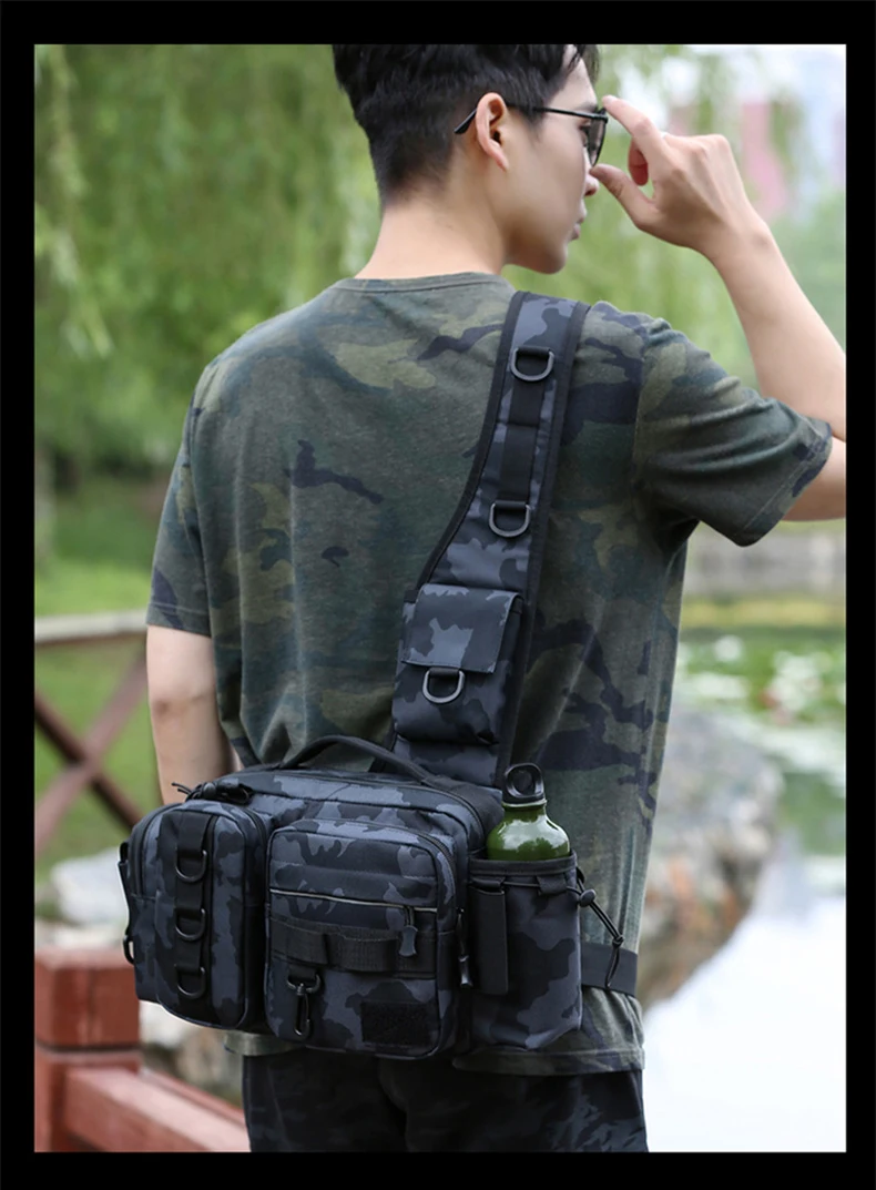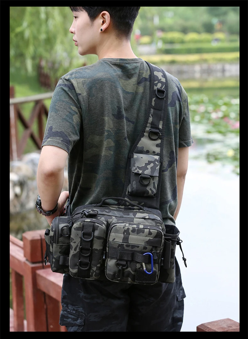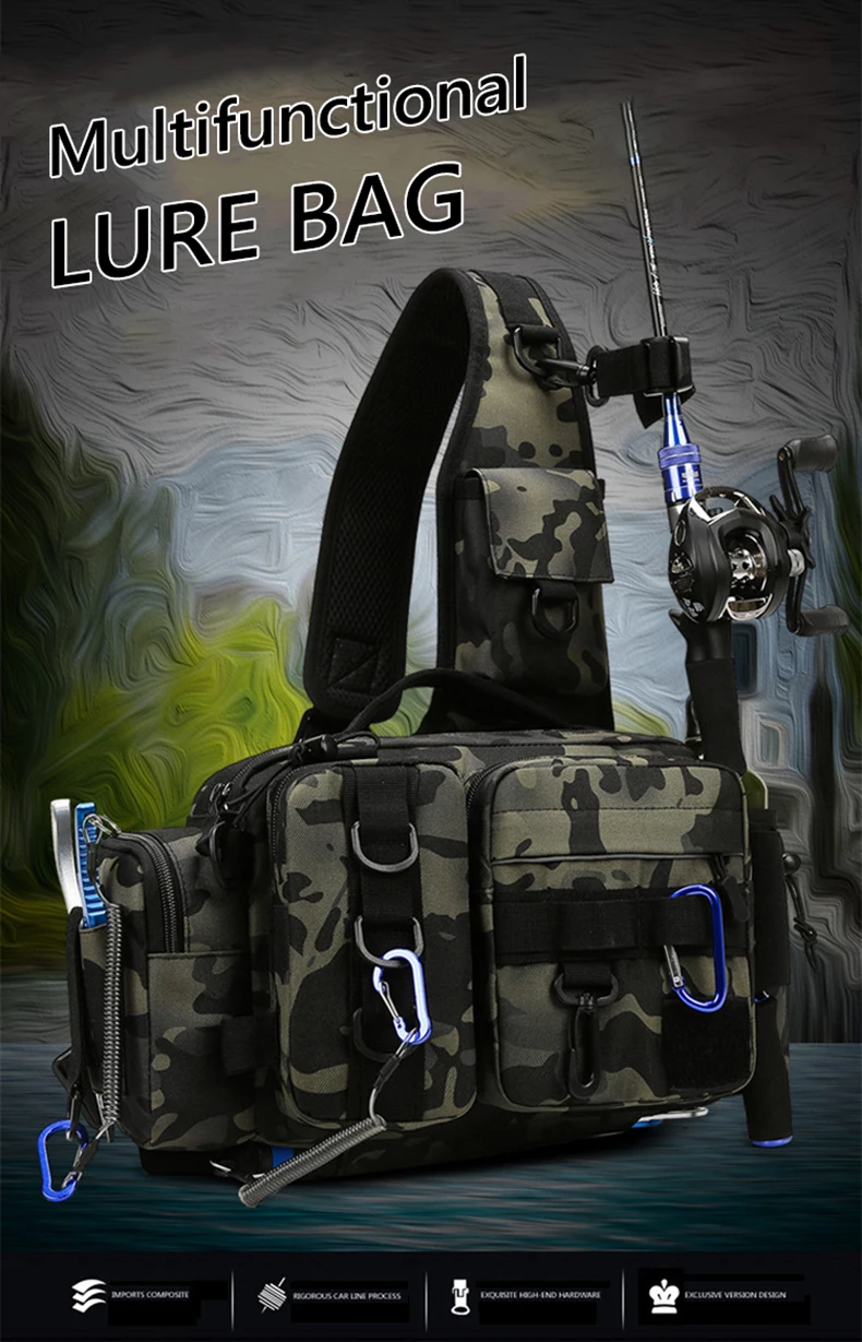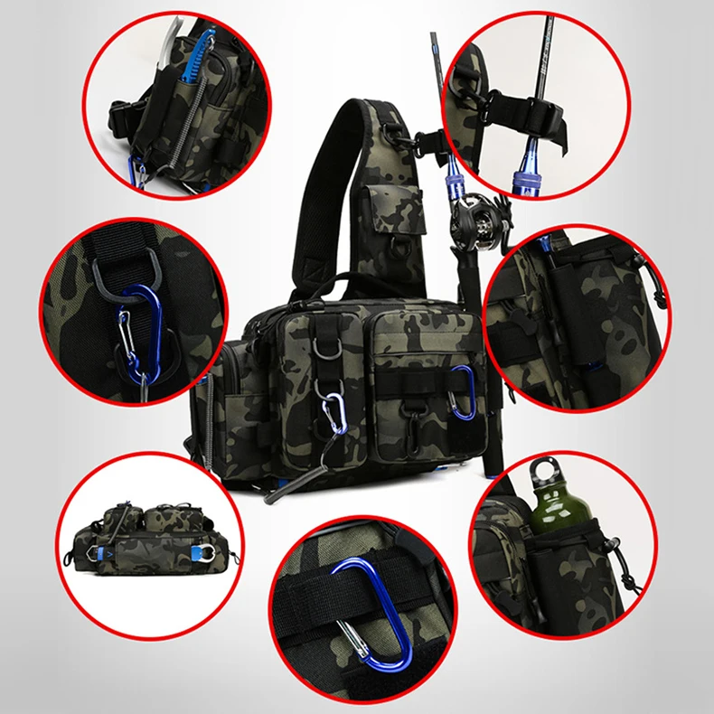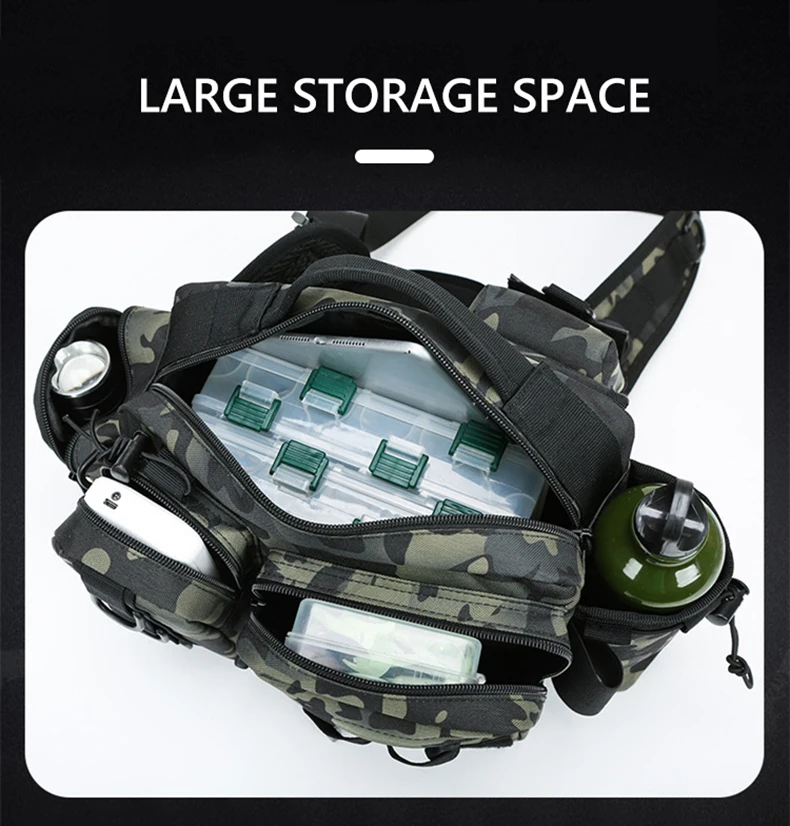 Con múltiples compartimentos acolchados, esta bolsa cruzada para exteriores puede mantener su ventosa, caja de señuelos, caña de pescar y otros accesorios de forma segura, y es impermeable, resistente a los arañazos y multifuncional.
