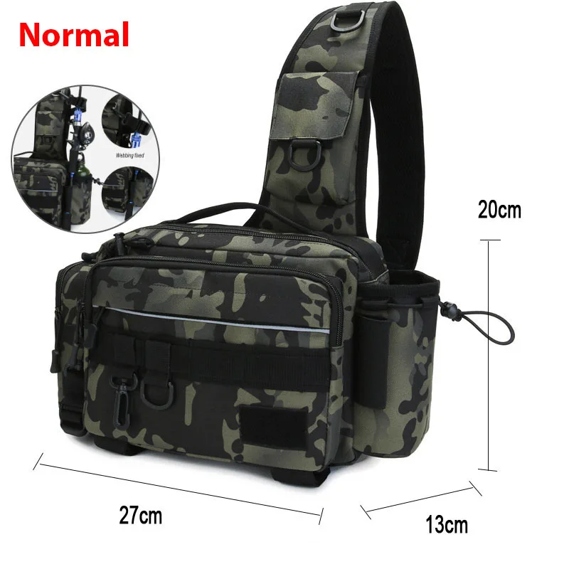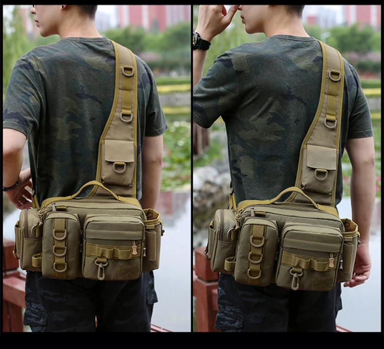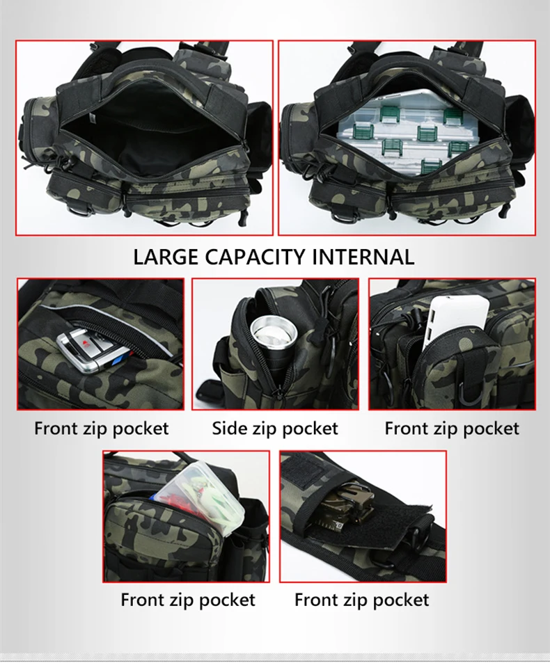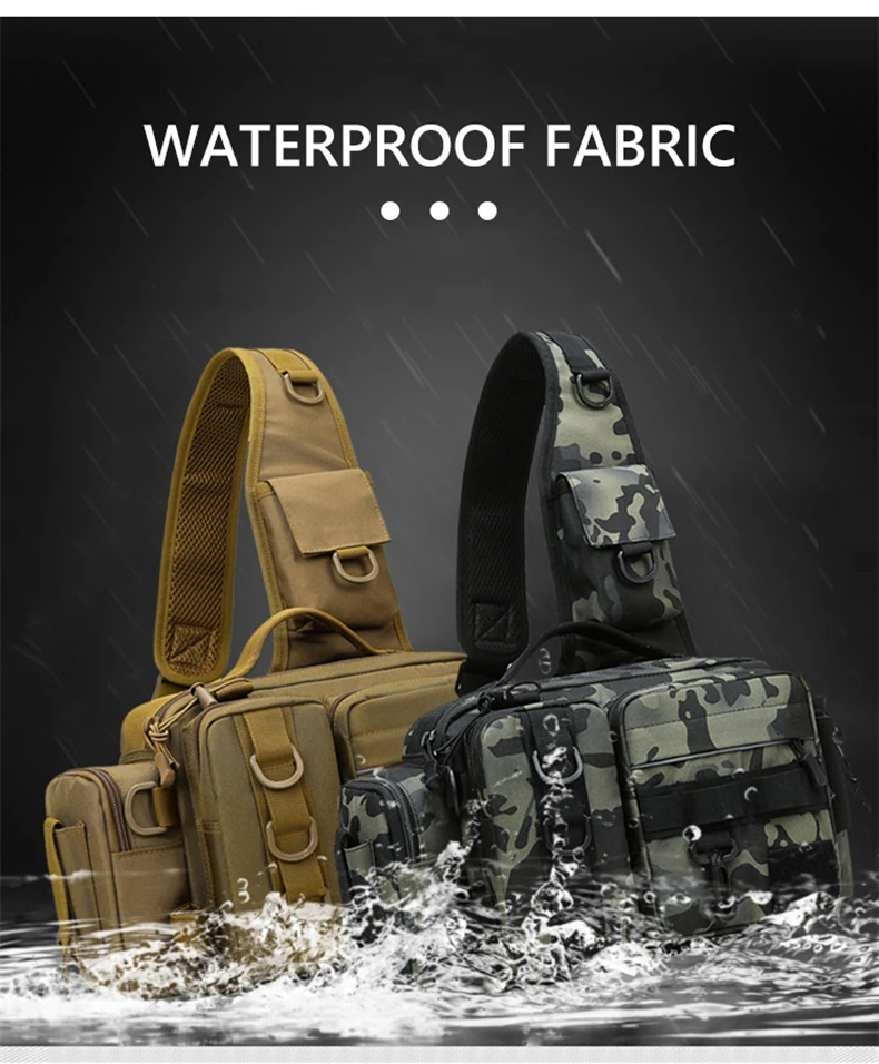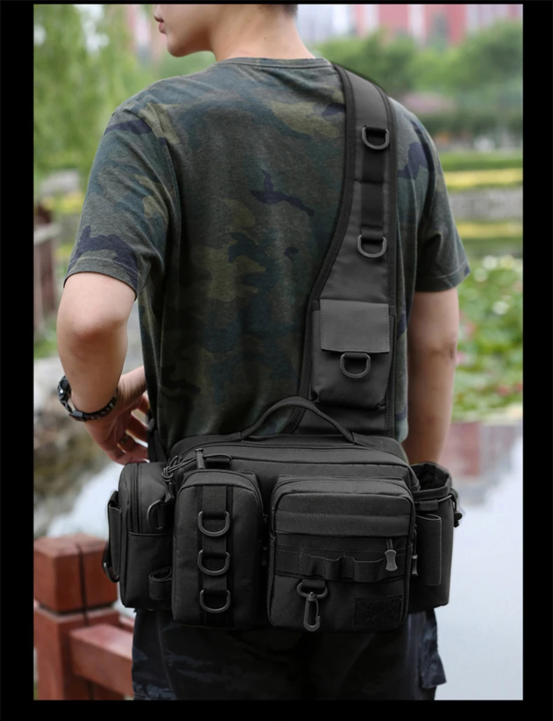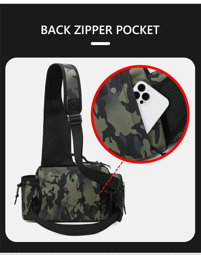 Con múltiples compartimentos acolchados, esta bolsa cruzada para exteriores puede mantener su ventosa, caja de señuelos, caña de pescar y otros accesorios de forma segura, y es impermeable, resistente a los arañazos y multifuncional.
