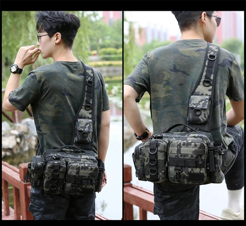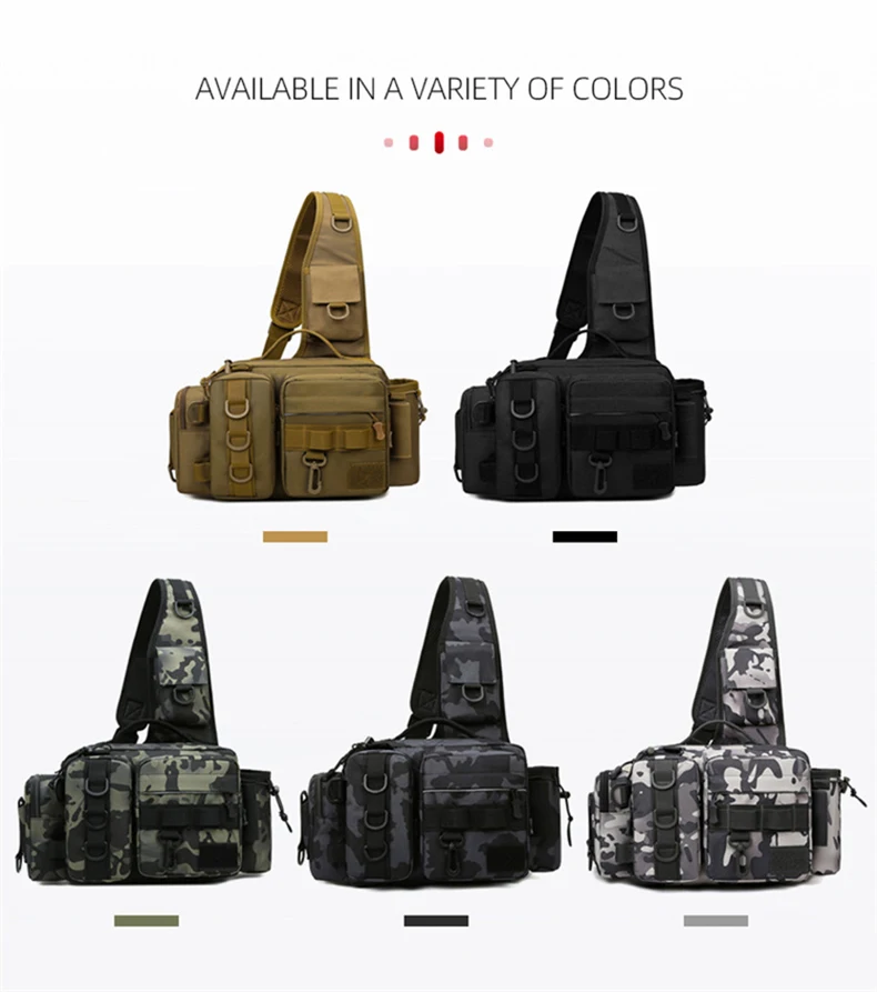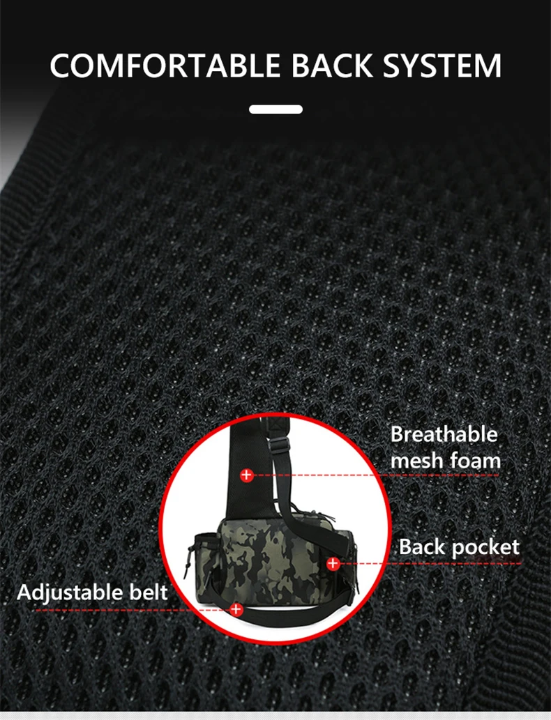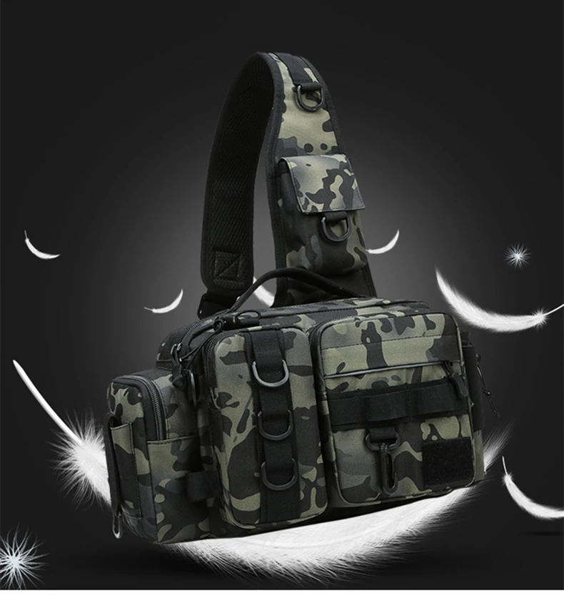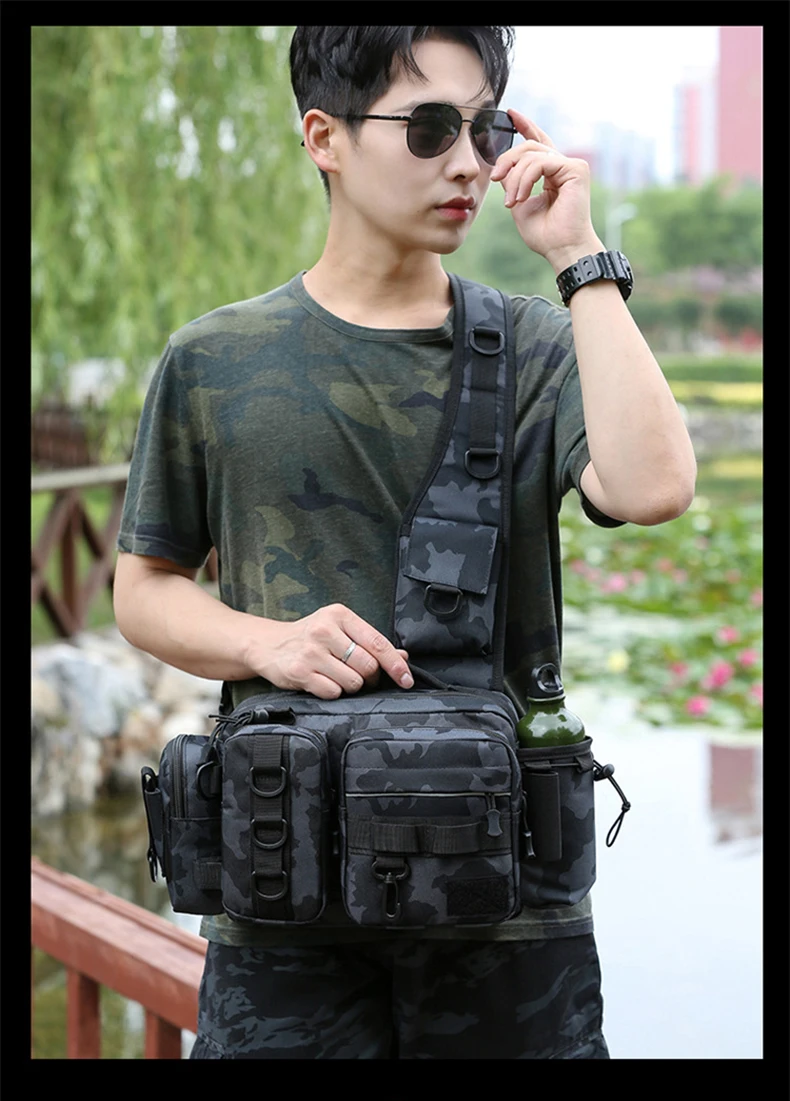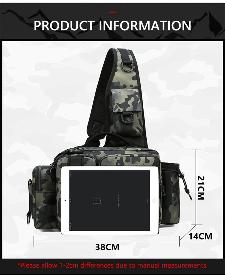Con múltiples compartimentos acolchados, esta bolsa cruzada para exteriores puede mantener su ventosa, caja de señuelos, caña de pescar y otros accesorios de forma segura, y es impermeable, resistente a los arañazos y multifuncional.