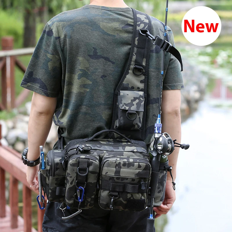 Con múltiples compartimentos acolchados, esta bolsa cruzada para exteriores puede mantener su ventosa, caja de señuelos, caña de pescar y otros accesorios de forma segura, y es impermeable, resistente a los arañazos y multifuncional.