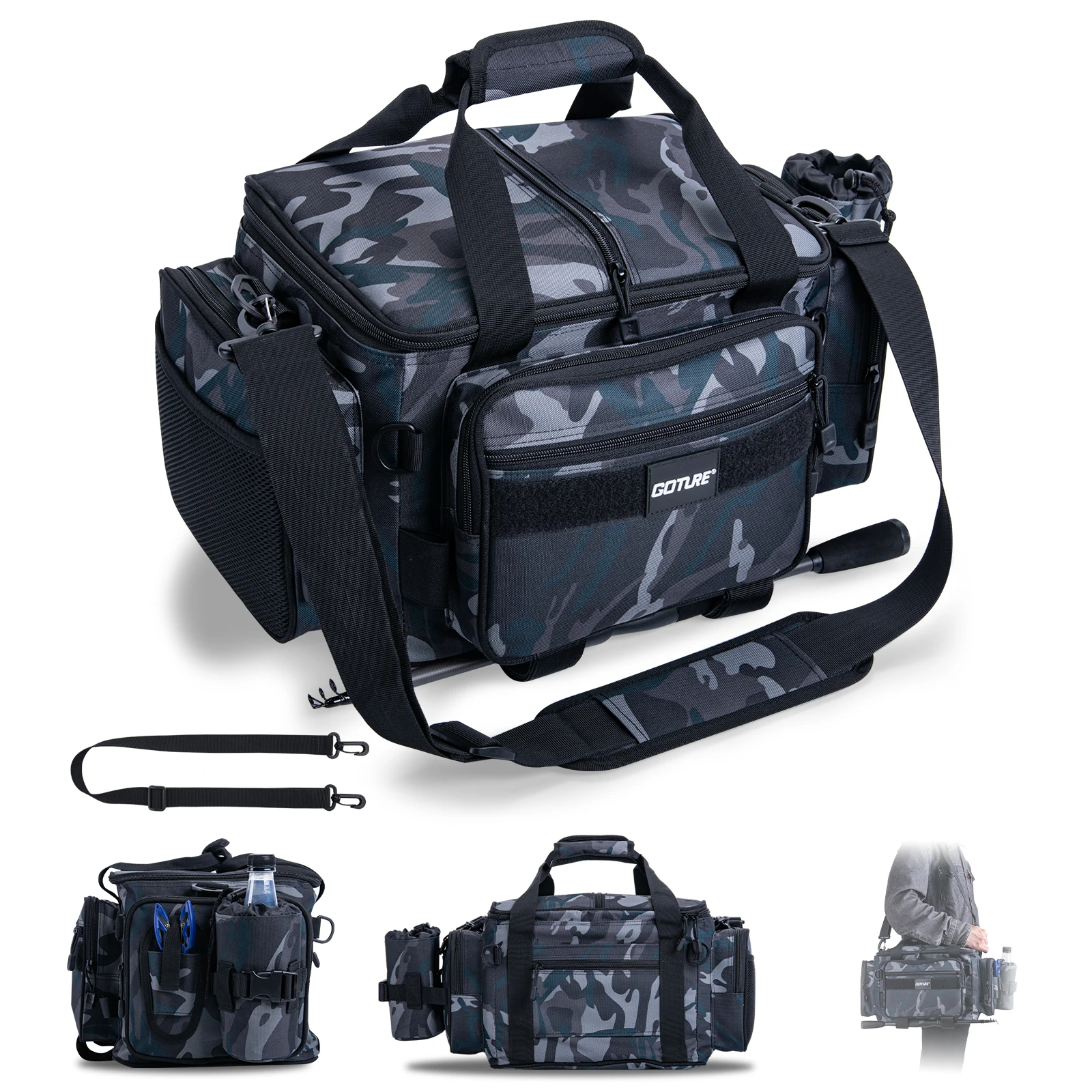 Bolsa de aparejos de pesca de calidad Goture 45*30*24cm 600D Oxford caja de señuelos bolsa de almacenamiento de equipo de pesca paquete para hombres mochila de pesca con mosca