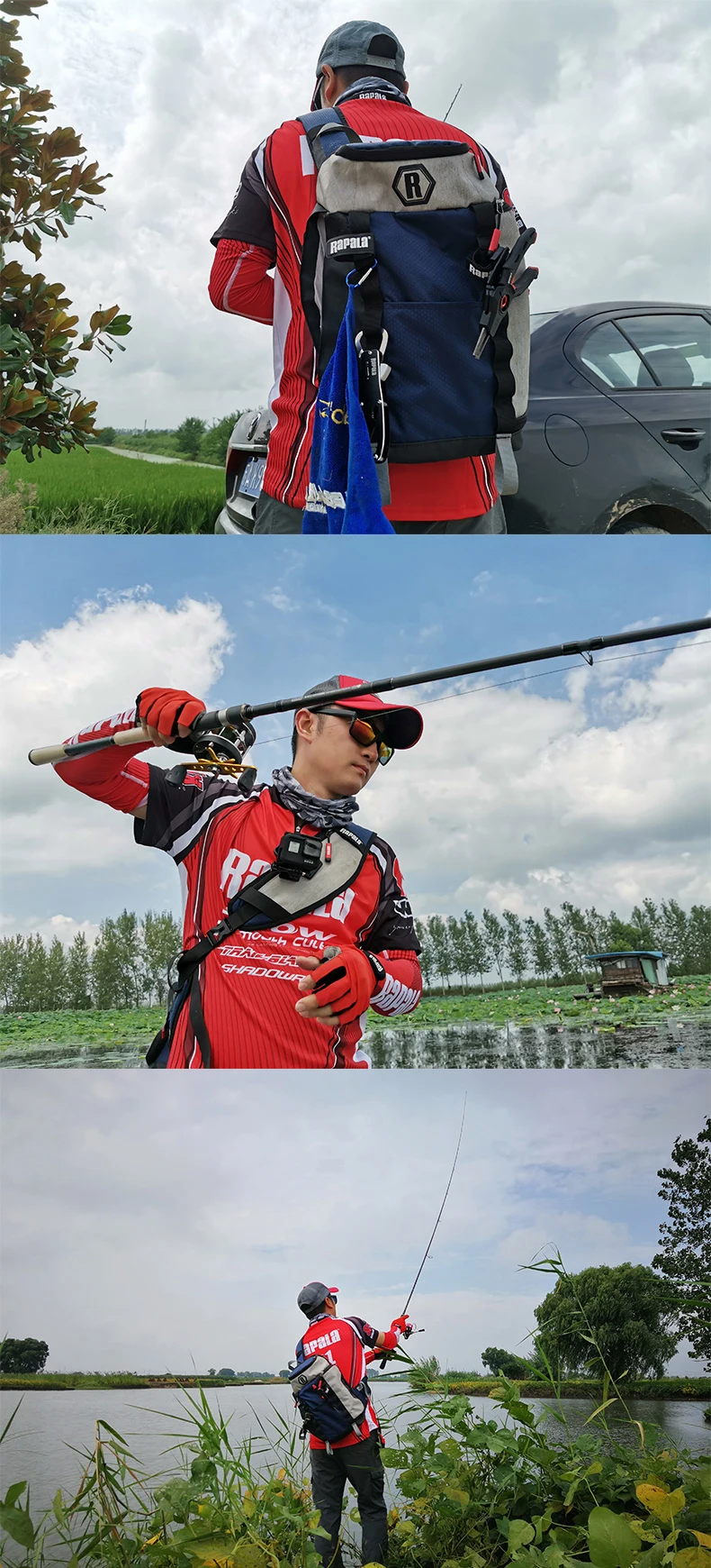 Bolsa de aparejos de pesca de Rapala, kit de equipo de pesca multifunción, bolso de bolsillo, un hombro, mochila al aire libre, bolsas de cintura con señuelo