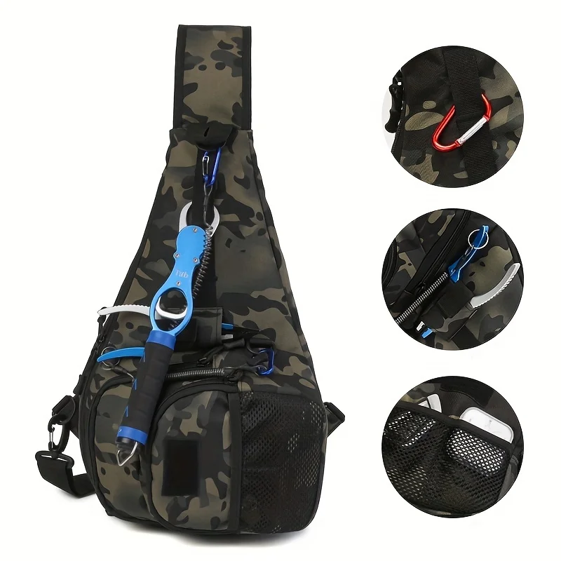Bolsa de aparejos de pesca multifuncional para hombre, bolsa de almacenamiento de aparejos de pesca, bolso cruzado de hombro al aire libre, senderismo, escalada