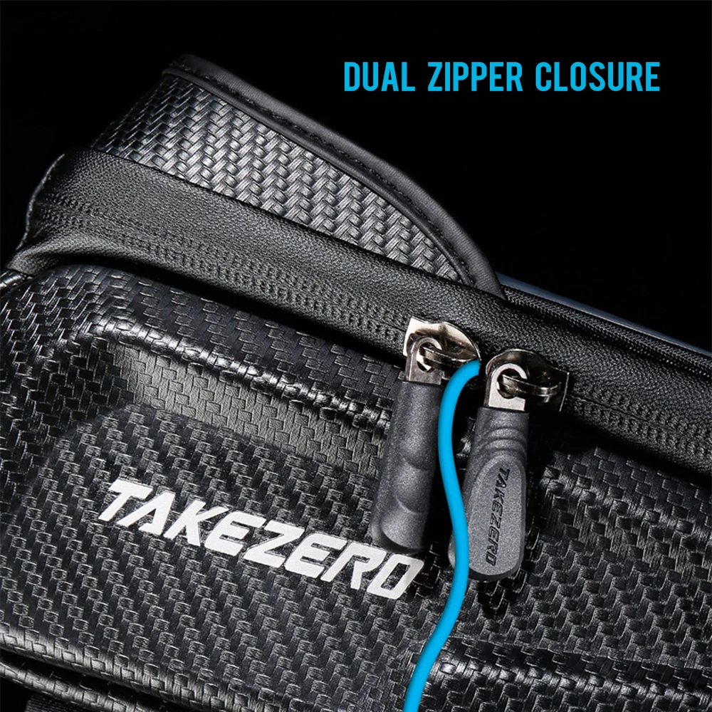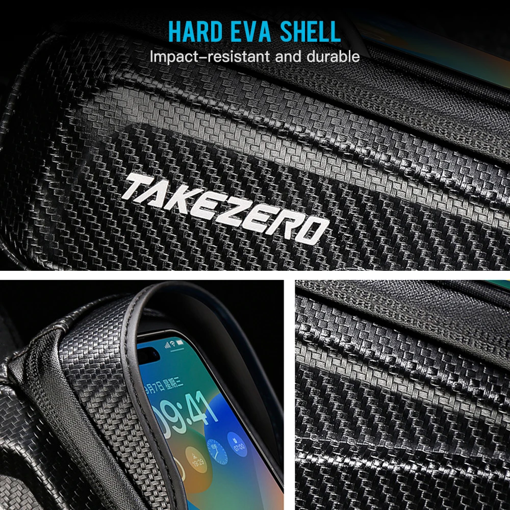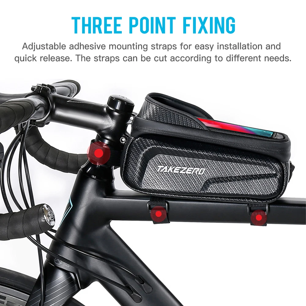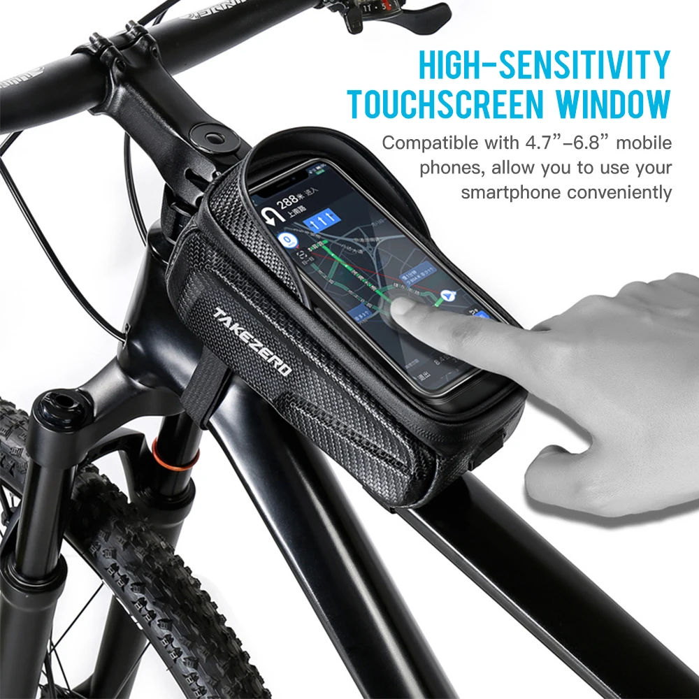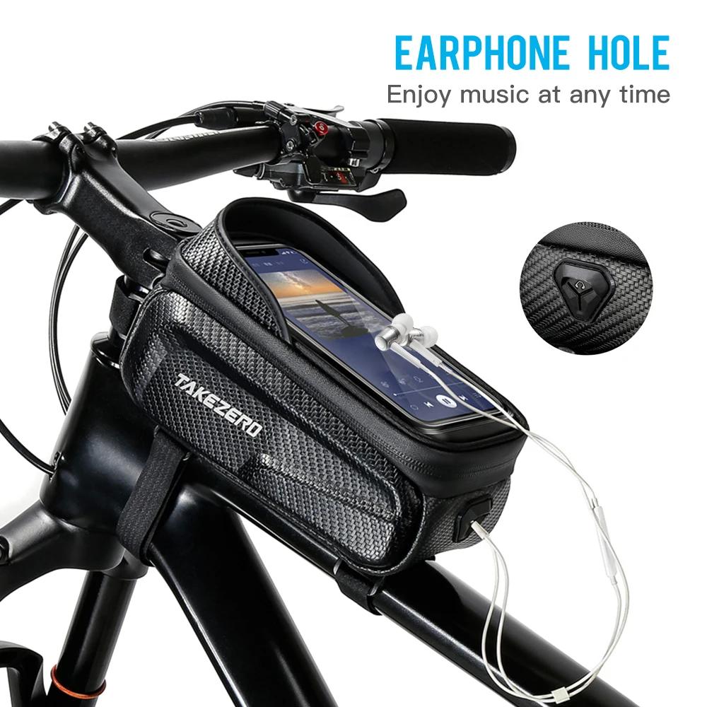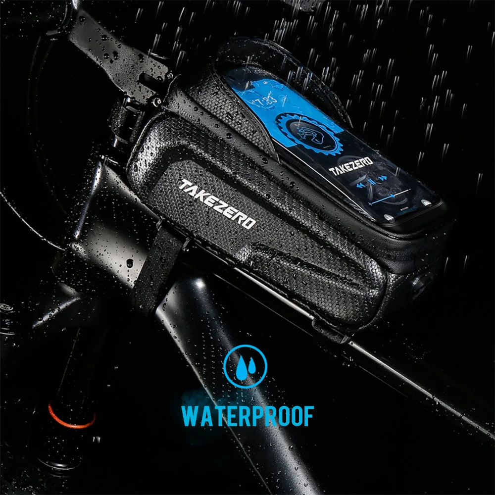 Esta bolsa de tubo superior para bicicleta está hecha de material EVA y cierre de cremallera para proteger sus artículos de las gotas de lluvia. Cuenta con una ventana de pantalla táctil, Parasol, puerto para auriculares, elementos reflectantes y muchos más puntos destacados para hacer de la bolsa una opción perfecta para aquellos que aman el ciclismo.