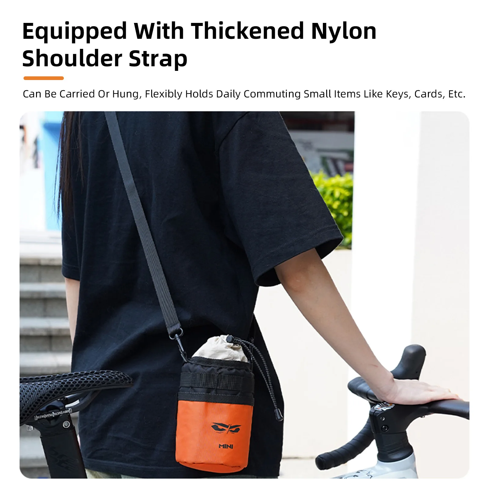 1.Formas de transporte múltiple: viene con una correa de hombro de nailon engrosada, se puede colgar en la bicicleta o llevar al hombro, se adapta a los desplazamientos y equitación diarios, contiene tarjetas de llaves y otros artículos pequeños.