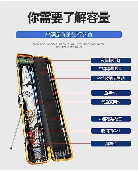 Bolsa para caña de pescar de 1,25 m, carcasa dura impermeable para PC, tres capas con marco de aluminio, bolsa para equipo de pesca engrosada, portátil ...........