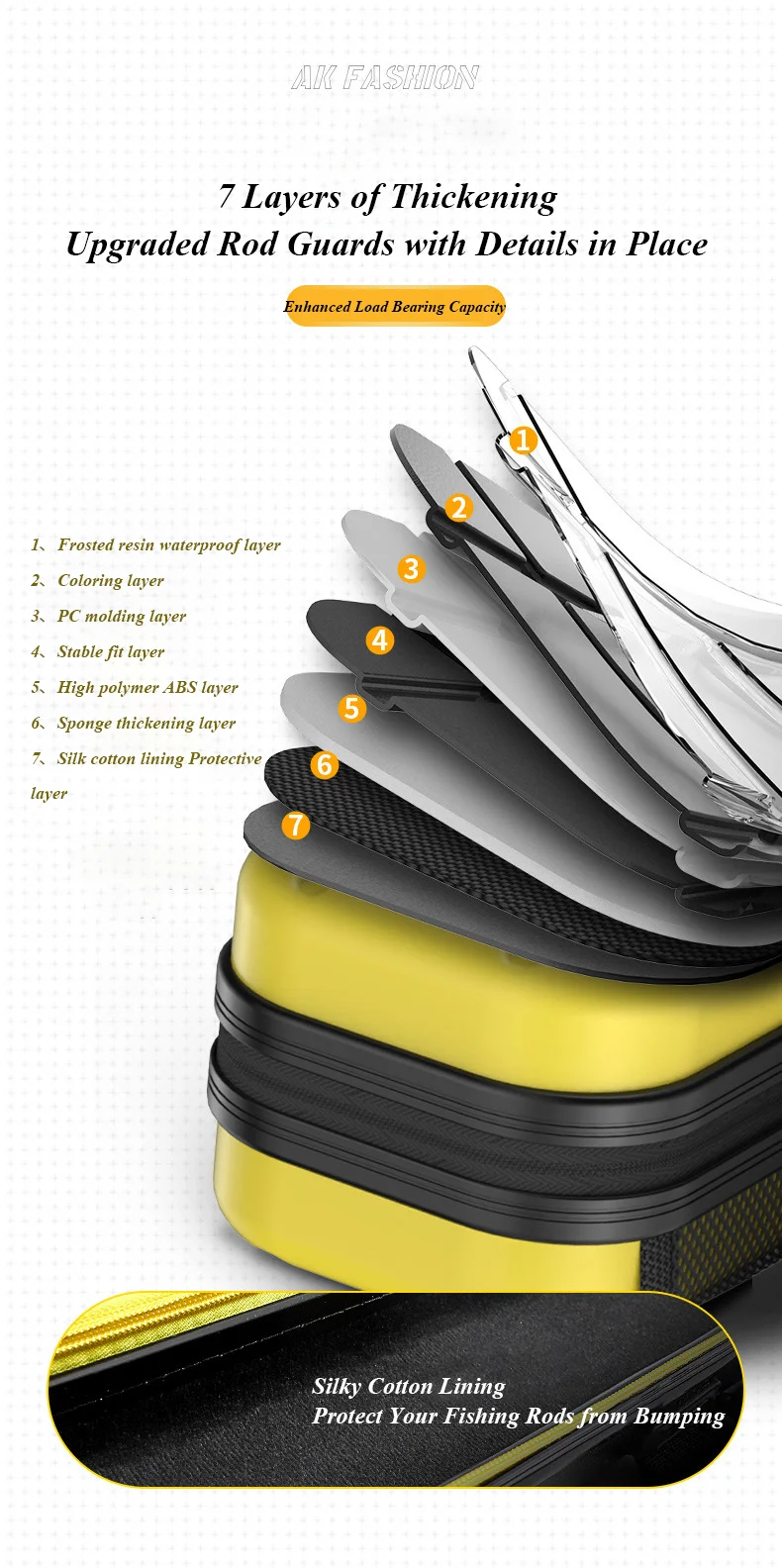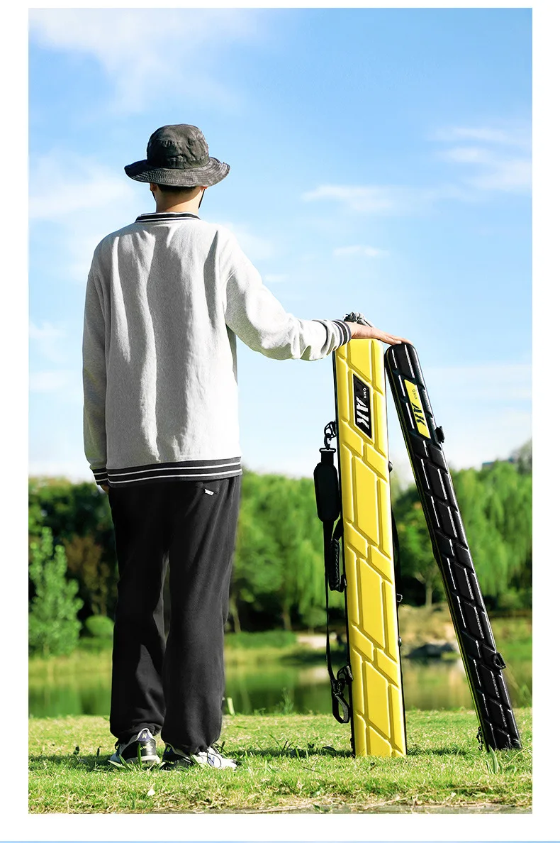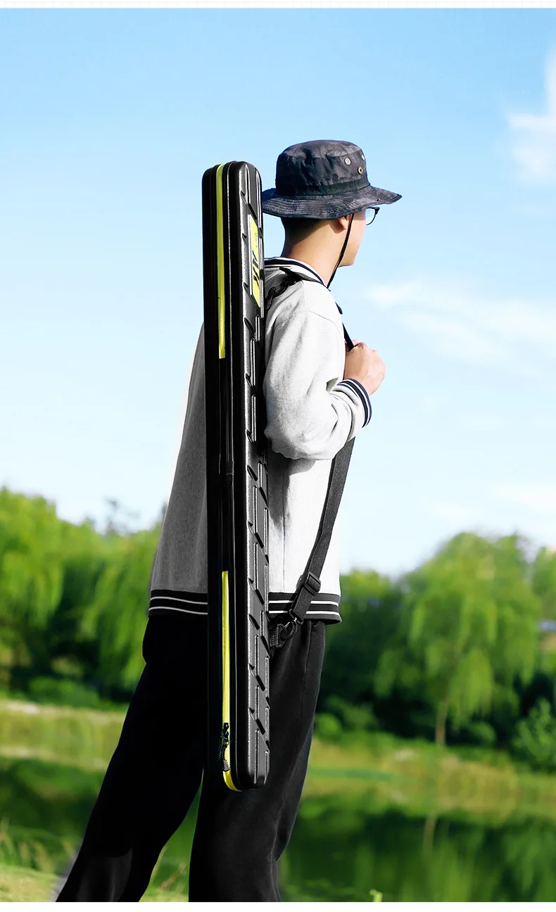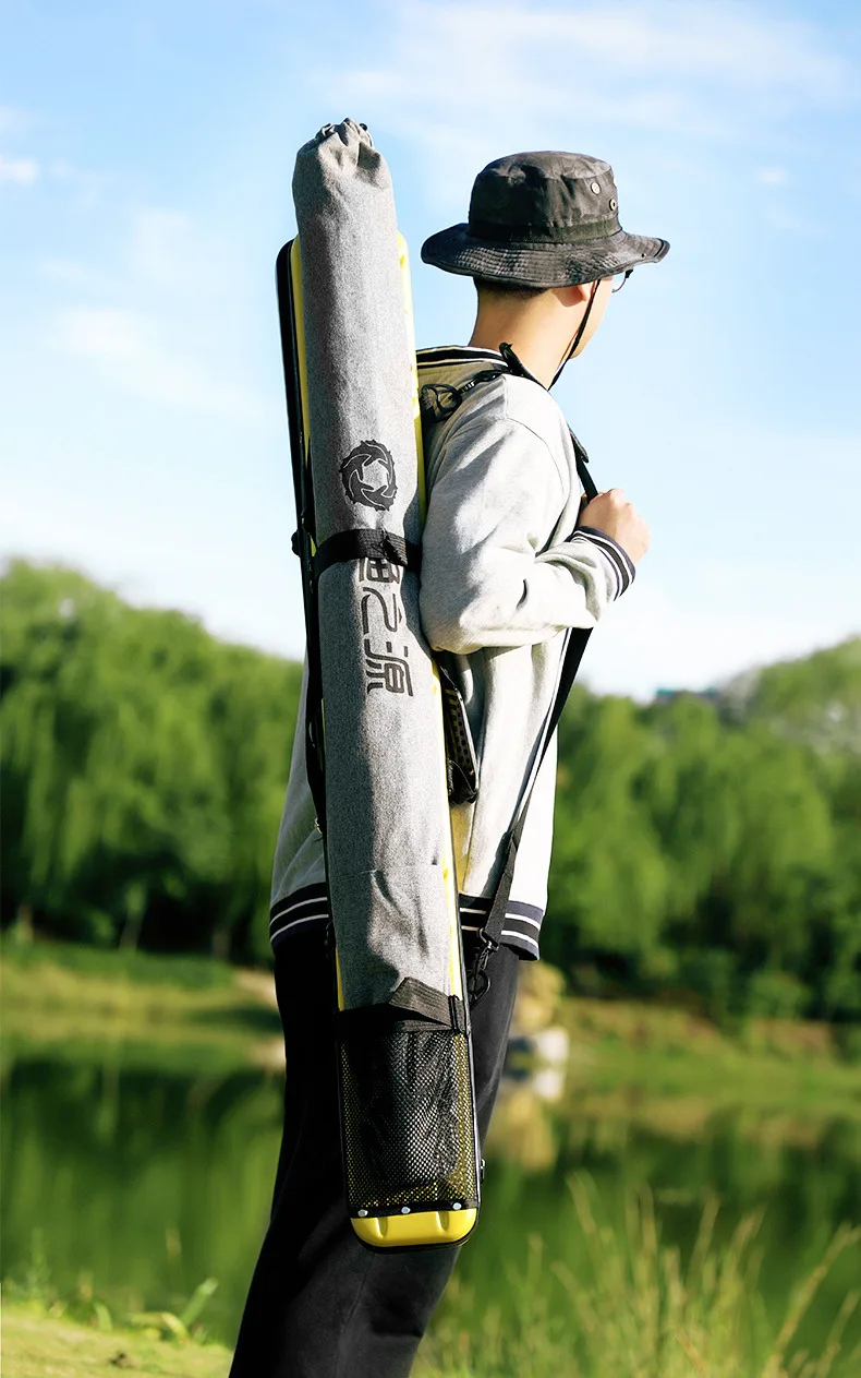 Bolsa para caña de pescar, carcasa dura a prueba de golpes, ABS + PC, estuche protector de almacenamiento, aparejos de equipo de 7 capas, transporte con bolsillo para paraguas de pescado
