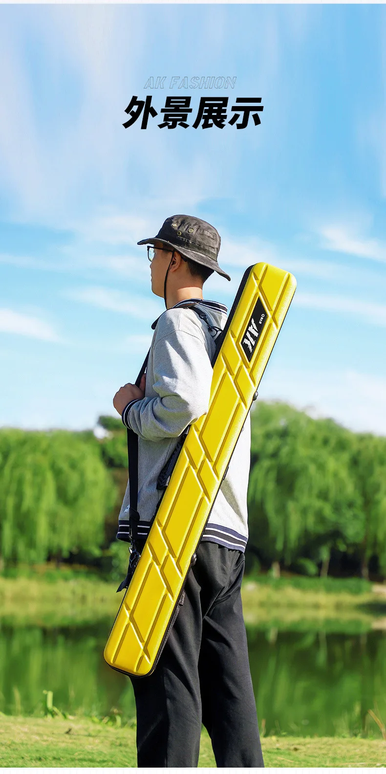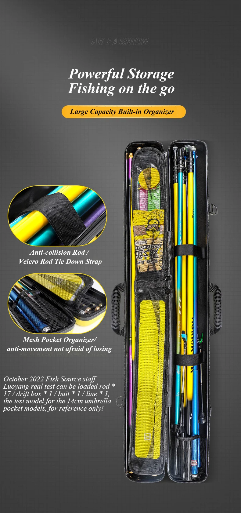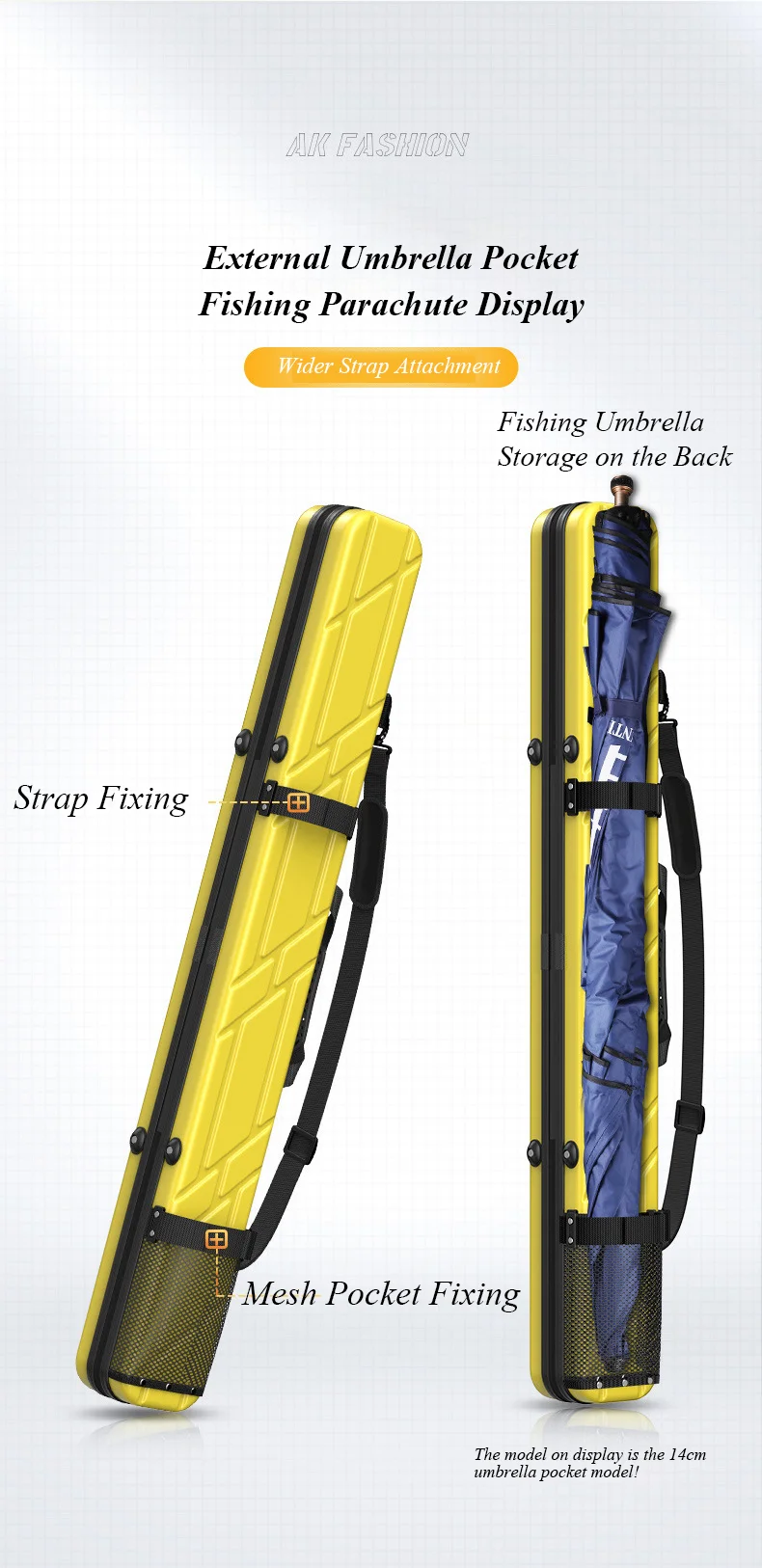 Bolsa para caña de pescar, carcasa dura a prueba de golpes, ABS + PC, estuche protector de almacenamiento, aparejos de equipo de 7 capas, transporte con bolsillo para paraguas de pescado