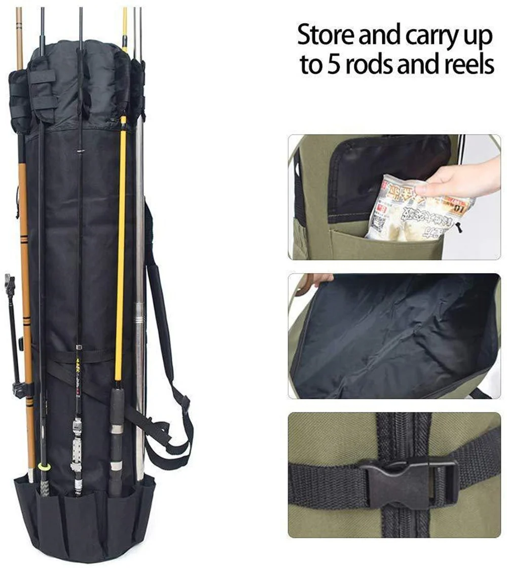 Bolsa de caña de pescar multifuncional para exteriores, carrete de tela Oxford, aparejos de pesca plegables, bolsas de almacenamiento para caña de pescar, Estuche de transporte de viaje Pesc