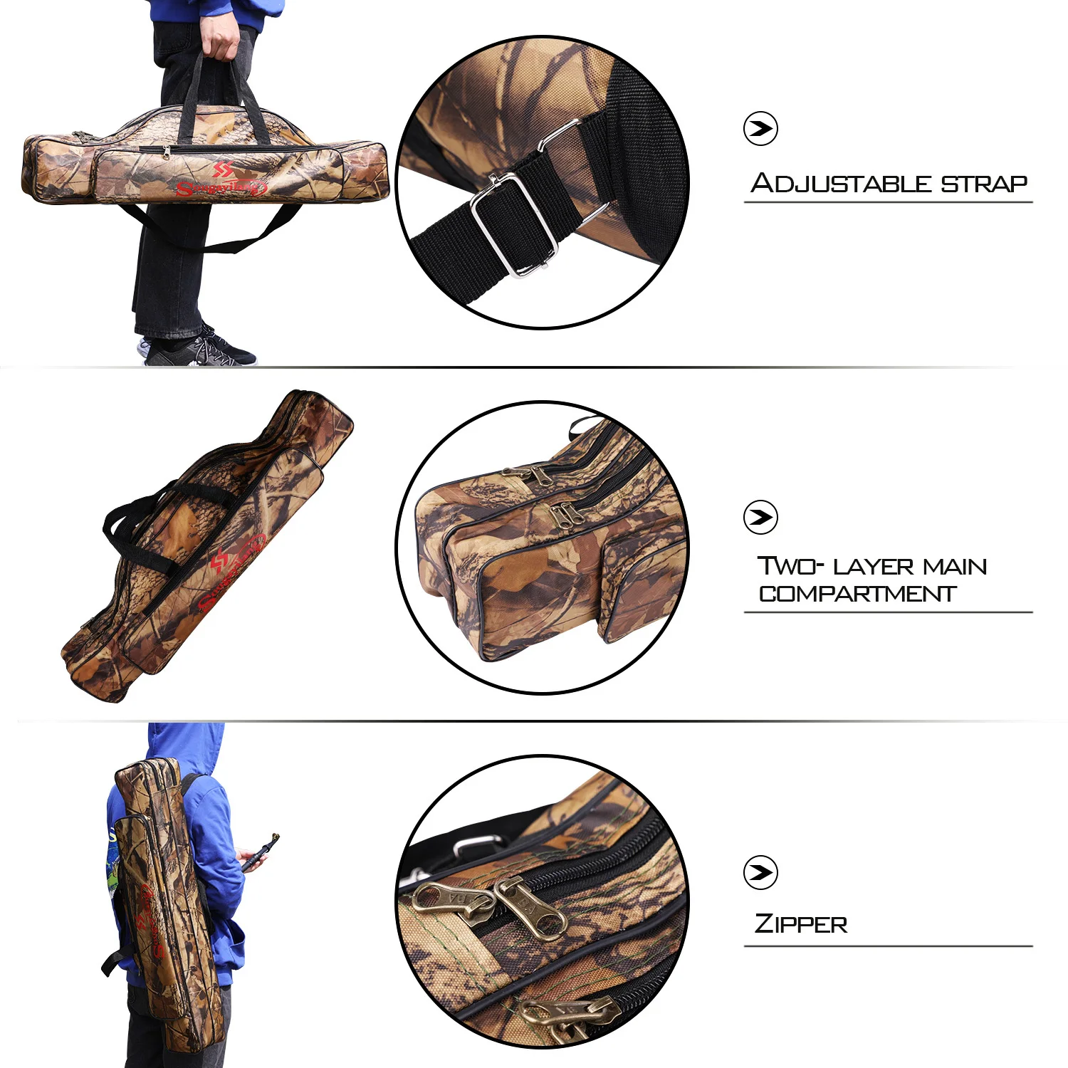 Muy buen bolso, material duradero, las cremalleras deslizan bien, el tamaño coincide con el anuncio, tiene dos compartimentos, más dos compartimentos laterales. Puse 2 varillas de 3 metros en 3 partes, más 5 varillas de viaje de 50cm desarmadas, y todavía quedó espacio. Lo recomiendo, vale mucho la pena.