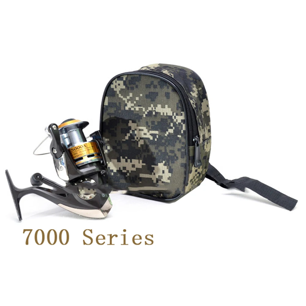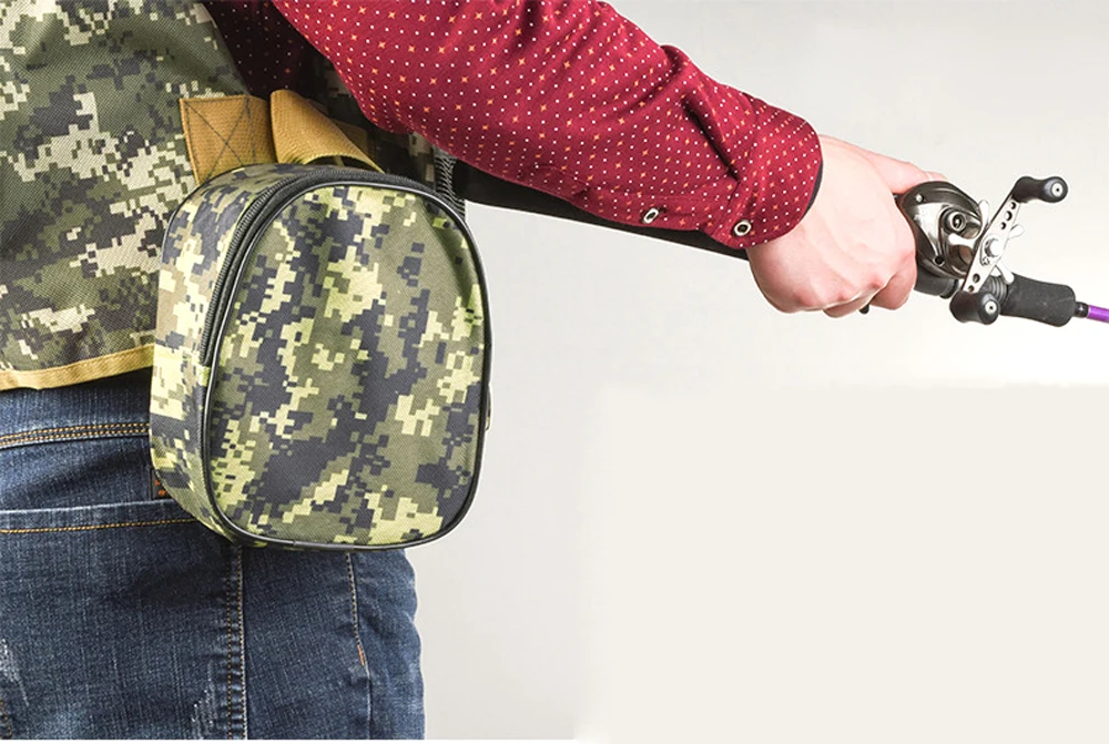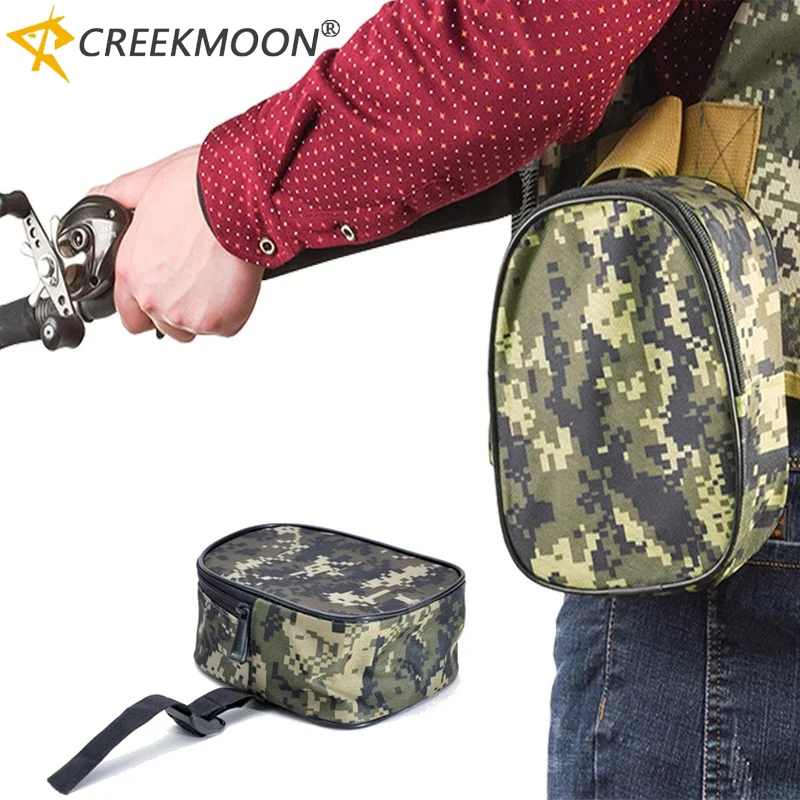 Bolsa de carretes de pesca, accesorios de camuflaje, riñonera pequeña, paquete de tela Oxford, cubierta portátil para señuelo de rueda, accesorios de funda blanda