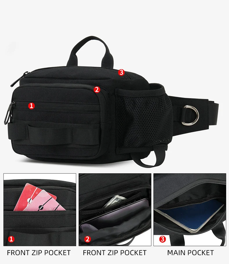 1.Configuración de múltiples bolsillos de gran capacidad, posición independiente de la botella de agua, almacenamiento conveniente