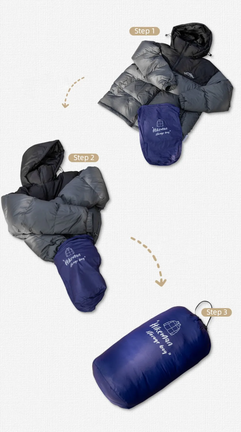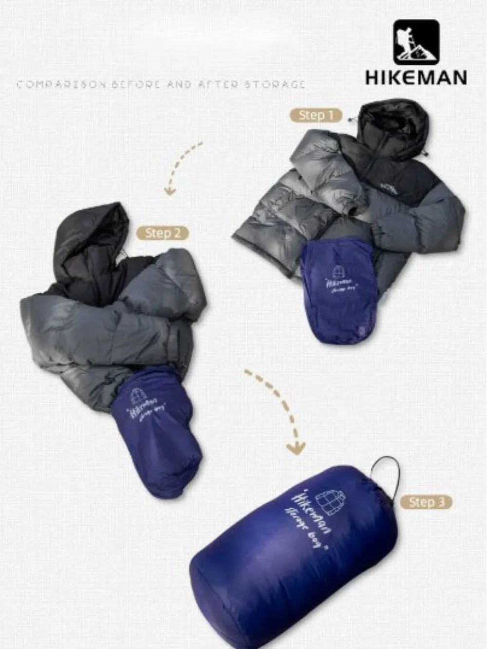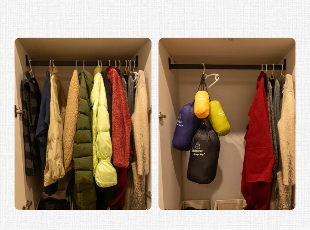1 bolsa de compresión para chaqueta de plumón para acampar al aire libre.