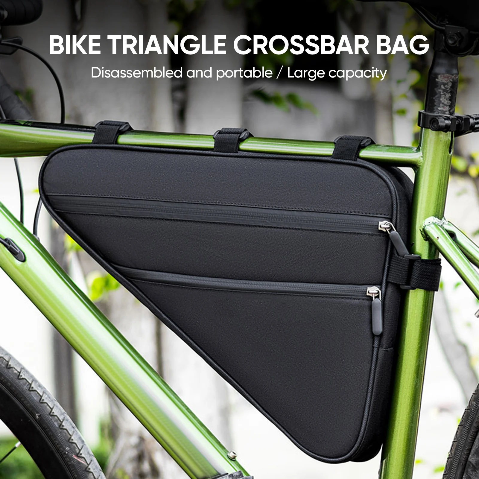 1.Paquete triangular para bicicletas de montaña: diseño lateral abierto de área grande para facilitar la carga y descarga de varios artículos.