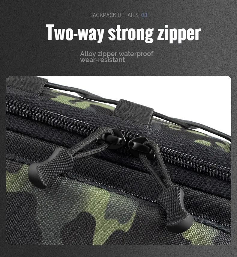 【Detalles perfectos】Bloqueo de ABS resistente, abrasivo grueso, presión de una pieza, hebilla de alta calidad, suave y fuerte. Cremallera fuerte bidireccional, cremallera de aleación impermeable y resistente al desgaste. Viene con un bolsillo con clip de cebo y un bolsillo para botella de agua para un almacenamiento y acceso rápidos.