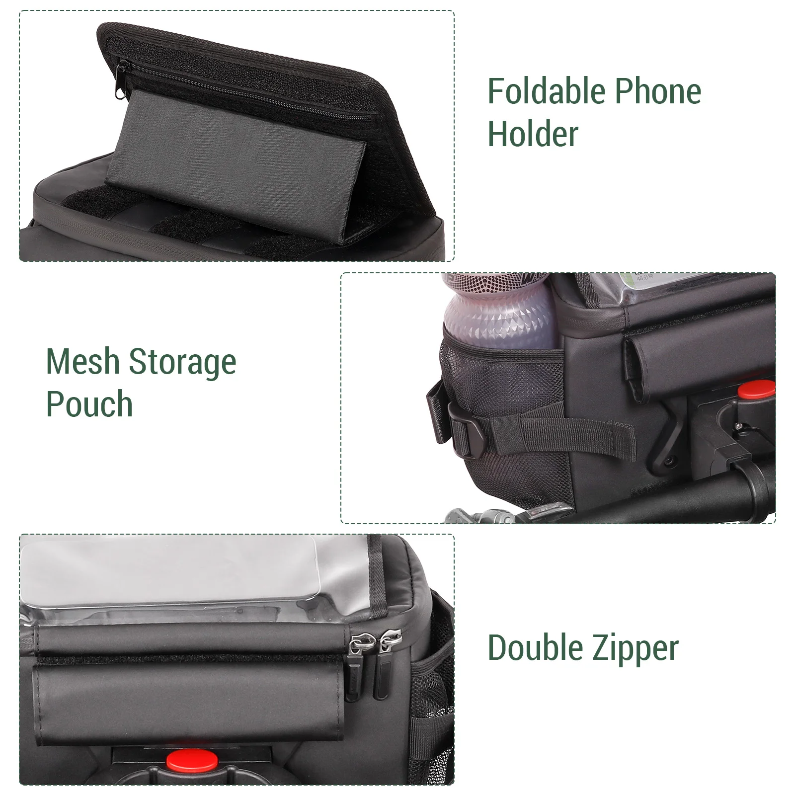 Esta bolsa de manillar proporciona la comodidad de responder llamadas telefónicas mientras conduce, sin la necesidad de sacar su teléfono.