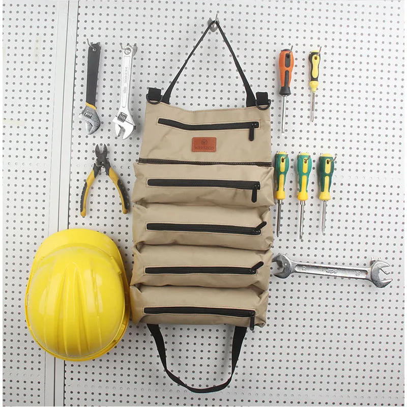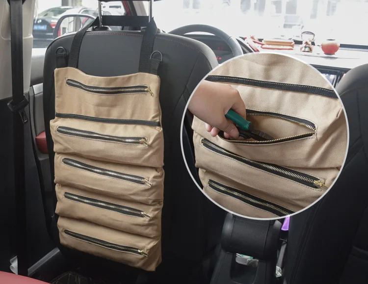 Bolsa de herramientas enrollable para coche, bolsa de almacenamiento de suspensión multiusos, organizador de llaves, cremallera de electricista