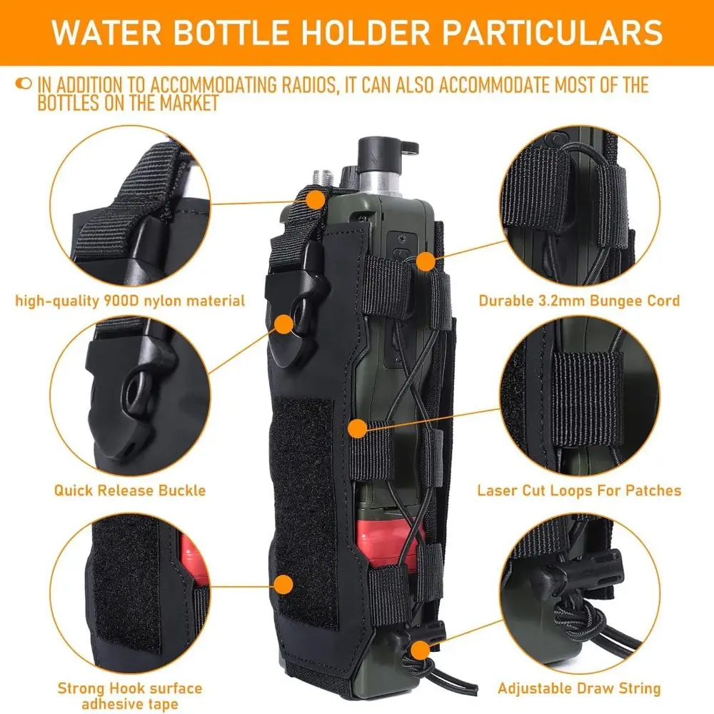 Esta bolsa para botella de agua está equipada con una correa de conexión del sistema, que se puede colgar fácilmente en una bolsa grande o usar en un cinturón, haciendo que la bolsa sea más personalizada y práctica.