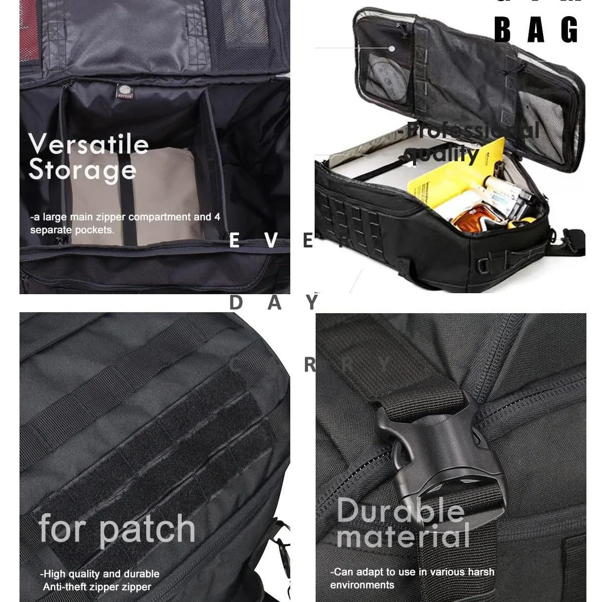 1.Configuración de bolsillo principal de gran capacidad, compartimento para computadora incorporado, configuración de múltiples bolsillos, conveniente para una variedad de almacenamiento