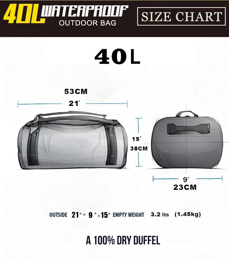Disponible en 40L(21 "L * 9" W * 15 "H) y 90L(27" L * 19 "W * 12" H), con 1 principal espacioso