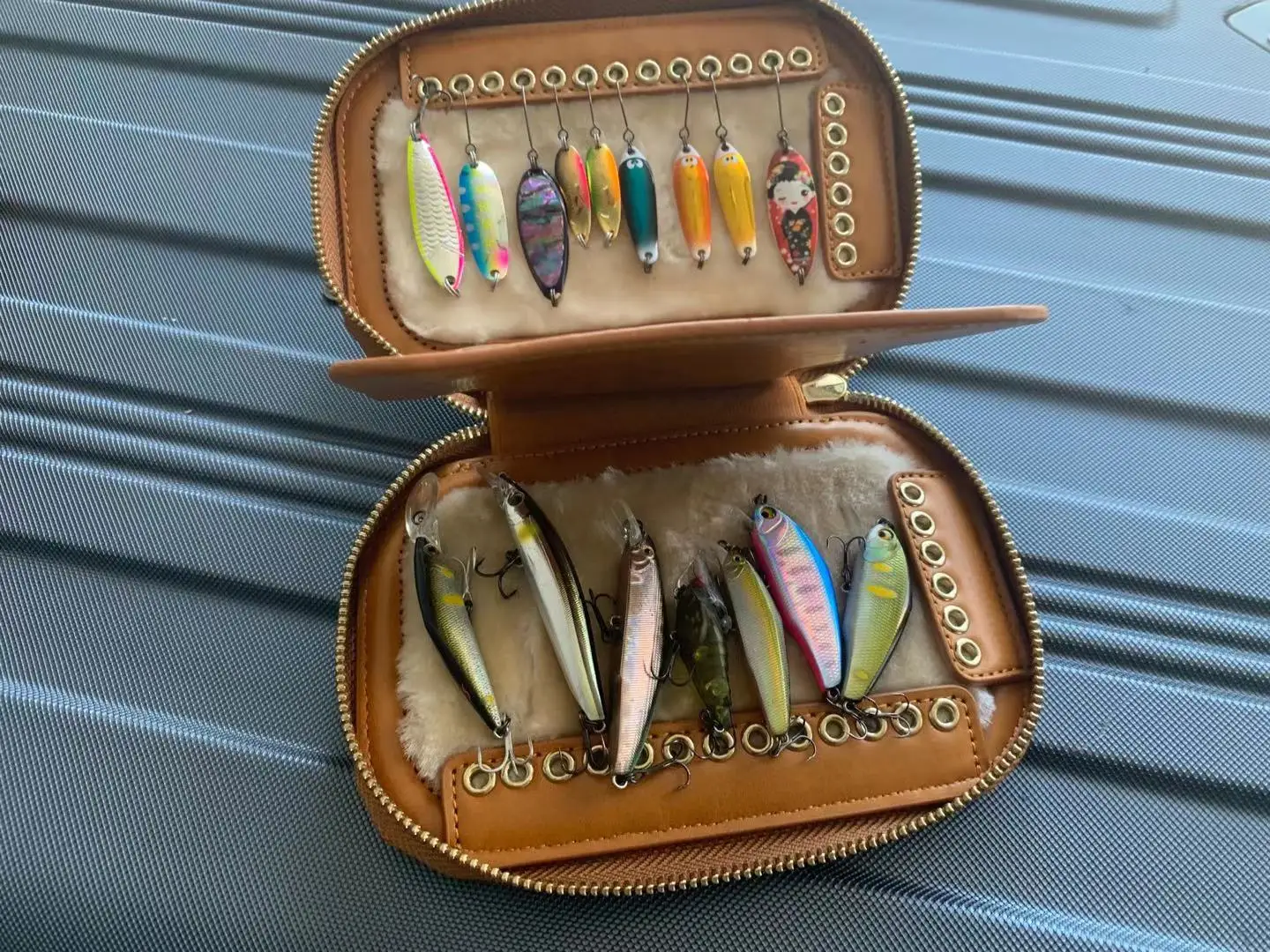 Bolsa de Minoan de lentejuelas de Japón Smith, bolsa de almacenamiento de cebo Stream, cuero de PU, antidesgaste, resistente al agua, caja de cebo duradera