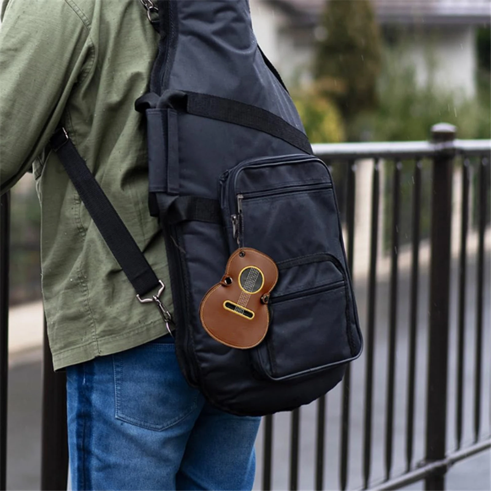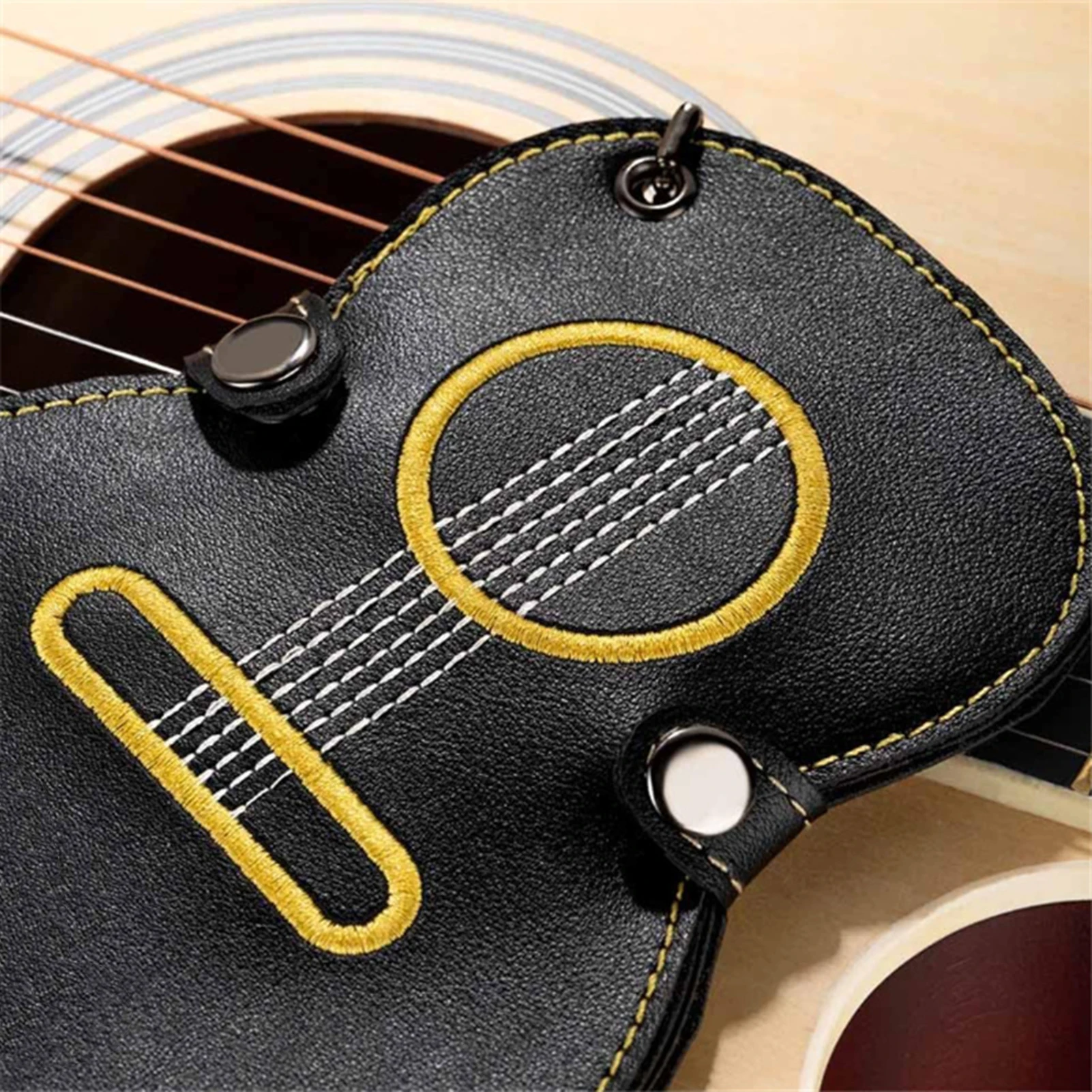 Portátil y elegante: esta bolsa para púas de guitarra está diseñada para facilitar su transporte y cuenta con un creativo soporte para púas en forma de guitarra, lo que la convierte en una adición elegante a su colección de accesorios de guitarra.