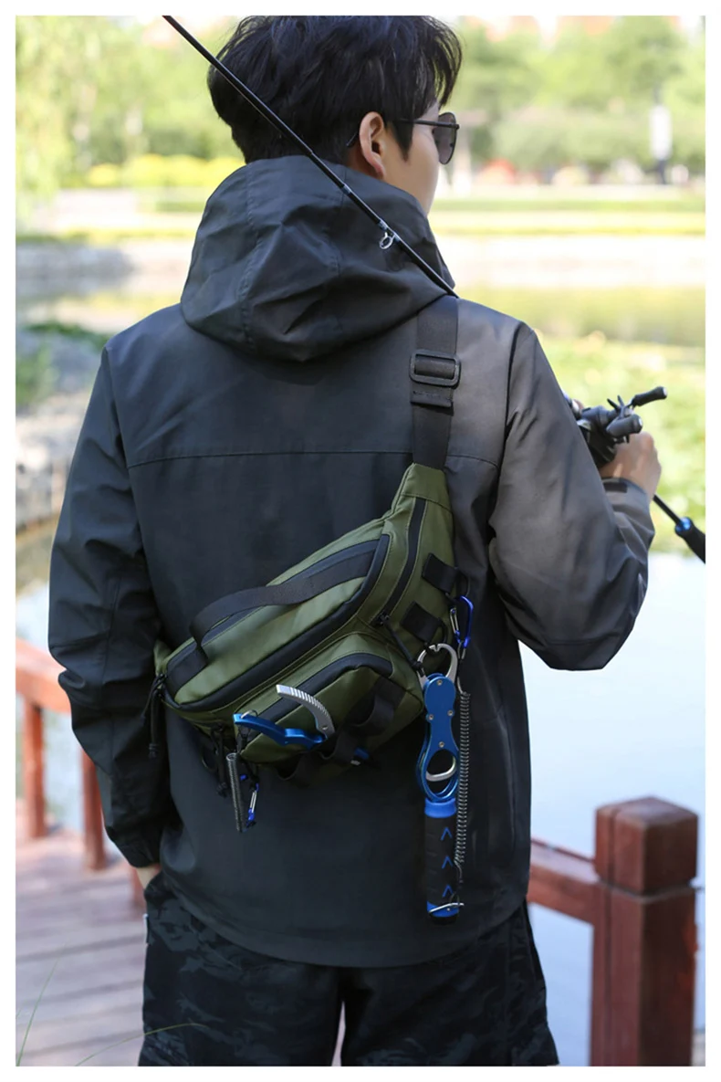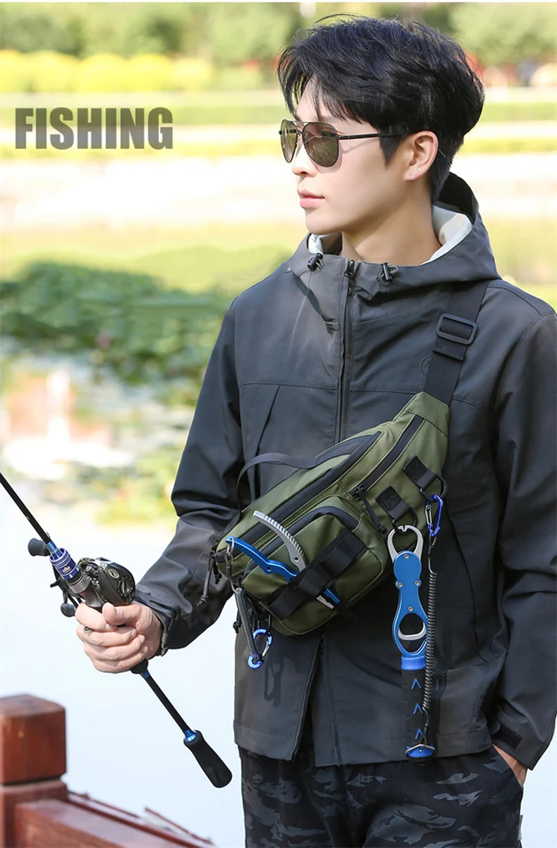 Equipo de pesca Bolsa de pecho Ligero Impermeable Crossbody Viajes Senderismo Riñonera multifuncional Deportes Bolsas al aire libre Z9A