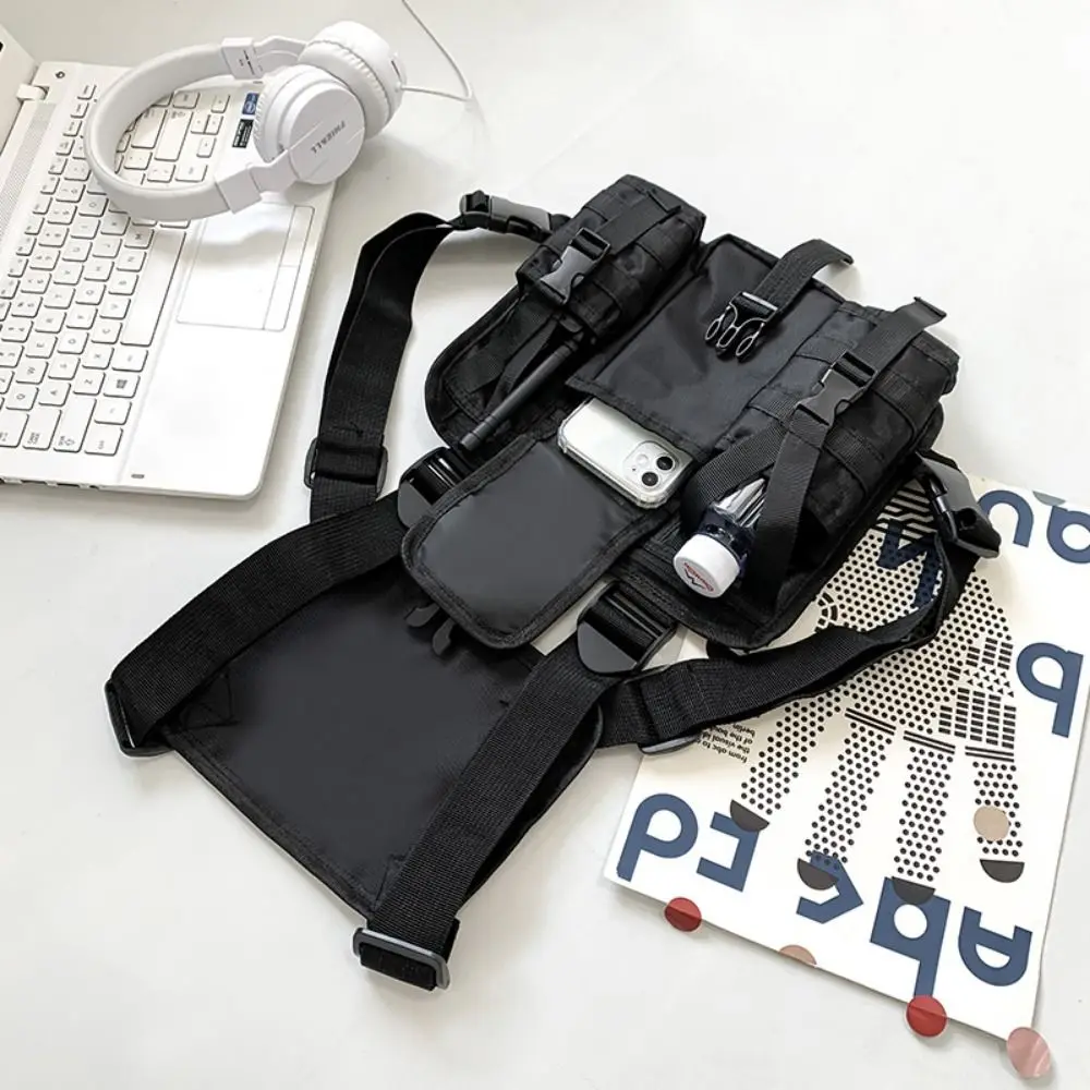 2. Versatile Pocket Configuration: A front buckle pocket and a main compartment with a front zipper pocket, this vest is designed with multiple pockets to accommodate various essentials such as keys, cards, and more. Experience practicality at its finest.
