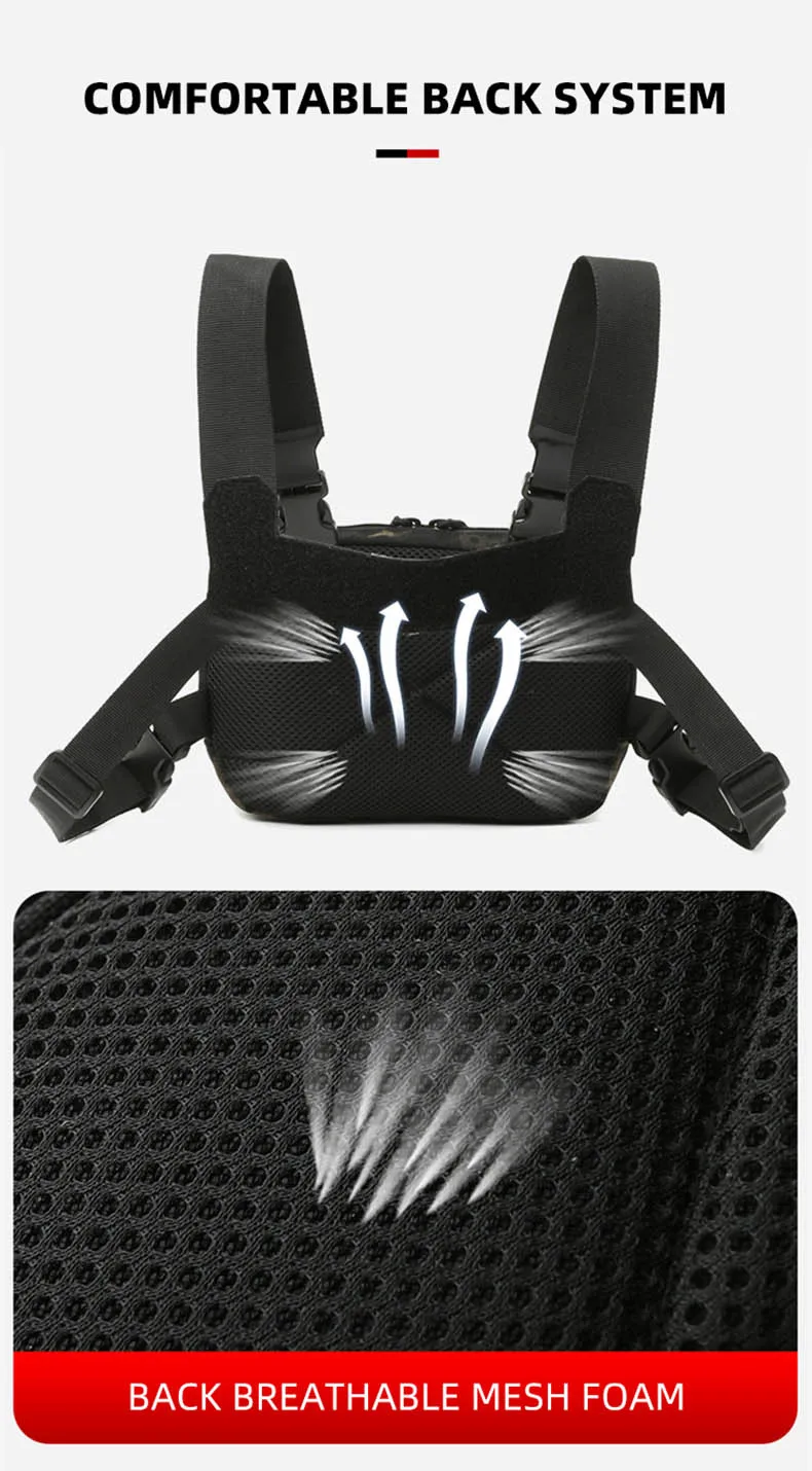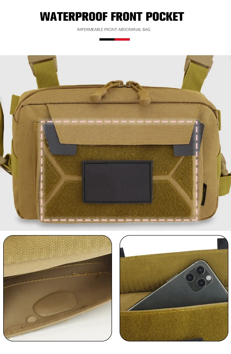 3. Diseño de gancho y bucle trasero --- para personalizar su identificación táctica, el diseño de parche de bucle le da a este chaleco para equipo de pecho más profesional para los entusiastas.