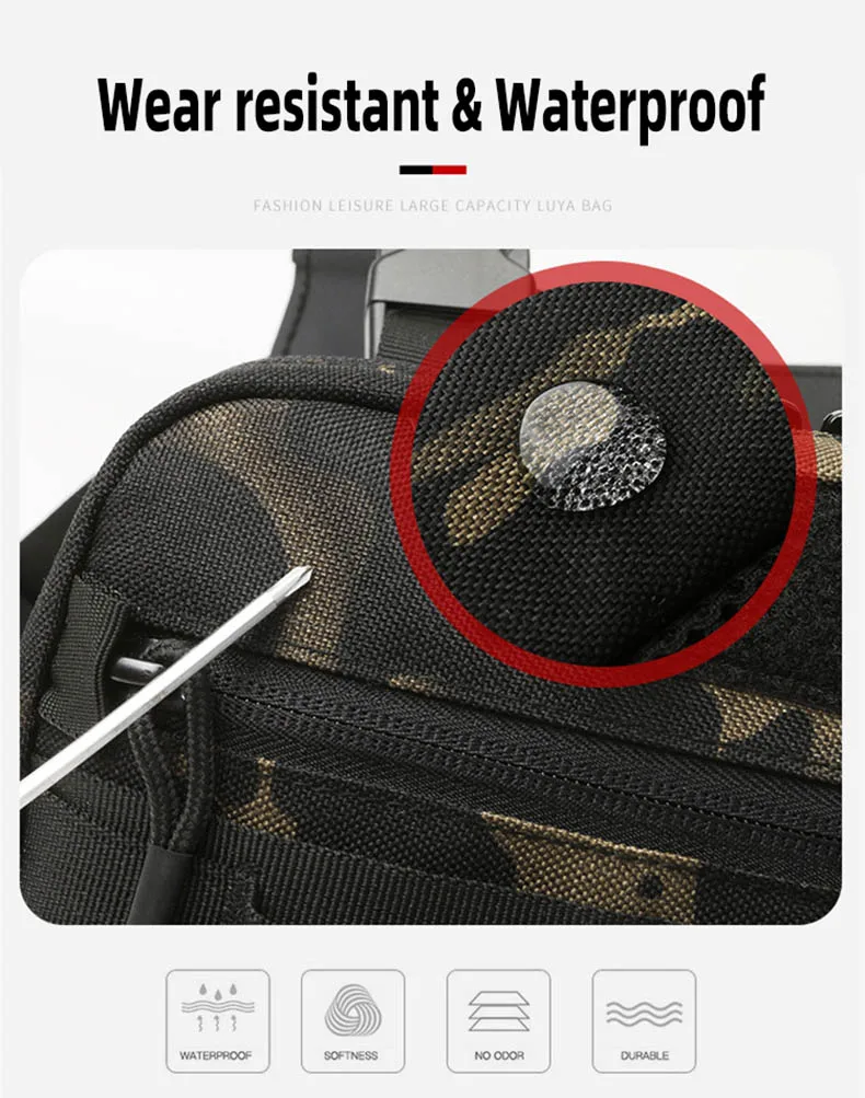 4.Bolsa táctica principal---La bolsa principal grande contiene un soporte para balas y un soporte para pistola, puede poner y sacar muy fácilmente.Presenta accesorios para pistola y diversos deportes al aire libre, perfectos para llevar su teléfono móvil, billetera, llavero, herramientas pequeñas y todas las necesidades que necesita.