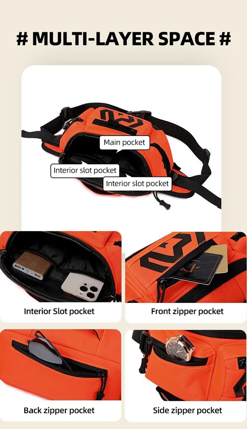 2. Bolsillo externo con cremallera para almacenar artículos pequeños en cualquier momento.