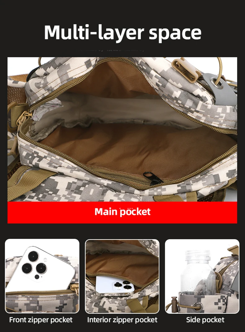 3. Con su diseño de hombro táctico para exteriores, este bolso cruzado ofrece un aspecto elegante y práctico para los entusiastas de la pesca deportiva.