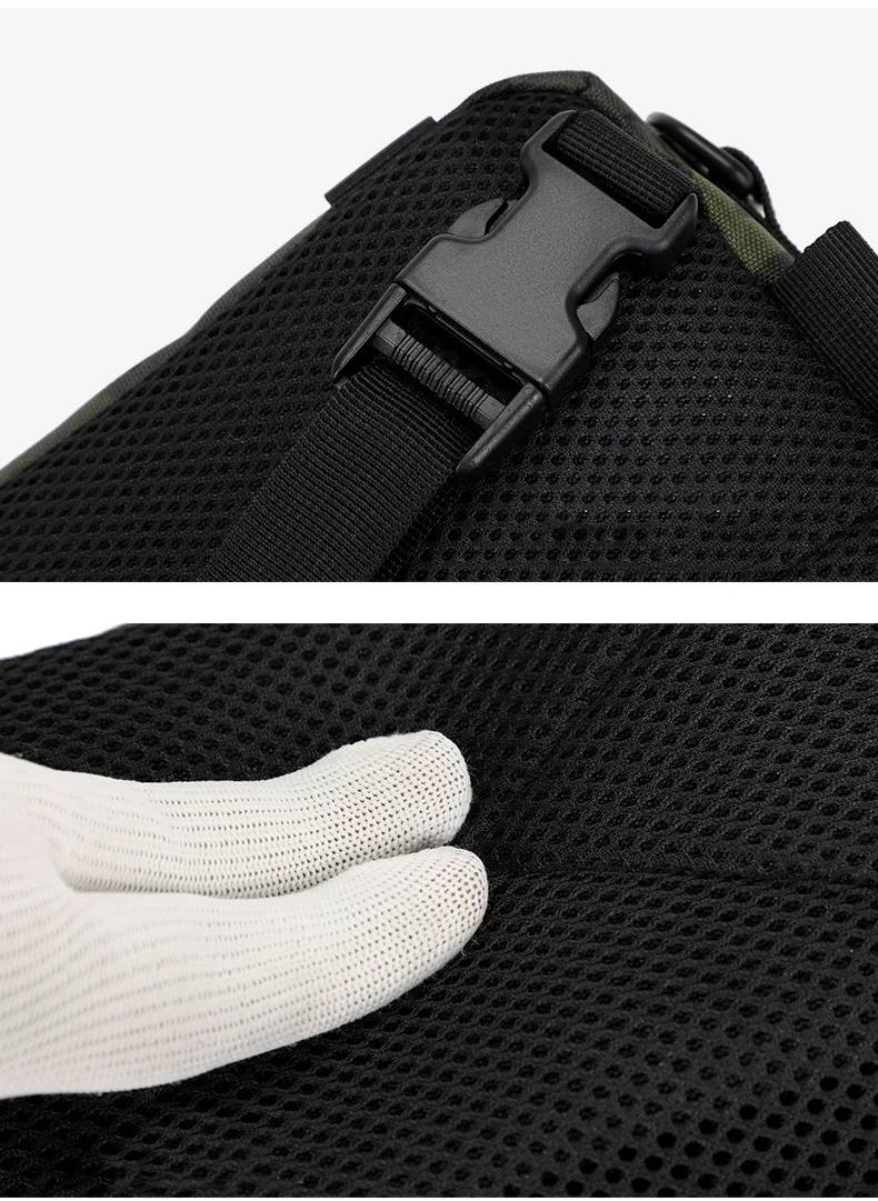 1.Panel frontal de gancho y bucle con sistema Molle: el panel frontal está hecho de molle de alta calidad y alta resistencia.Fácil de recoger y recuperar artículos.Puedes combinar tus bolsas y todos los equipos que necesites con nuestro aparejo para el pecho.