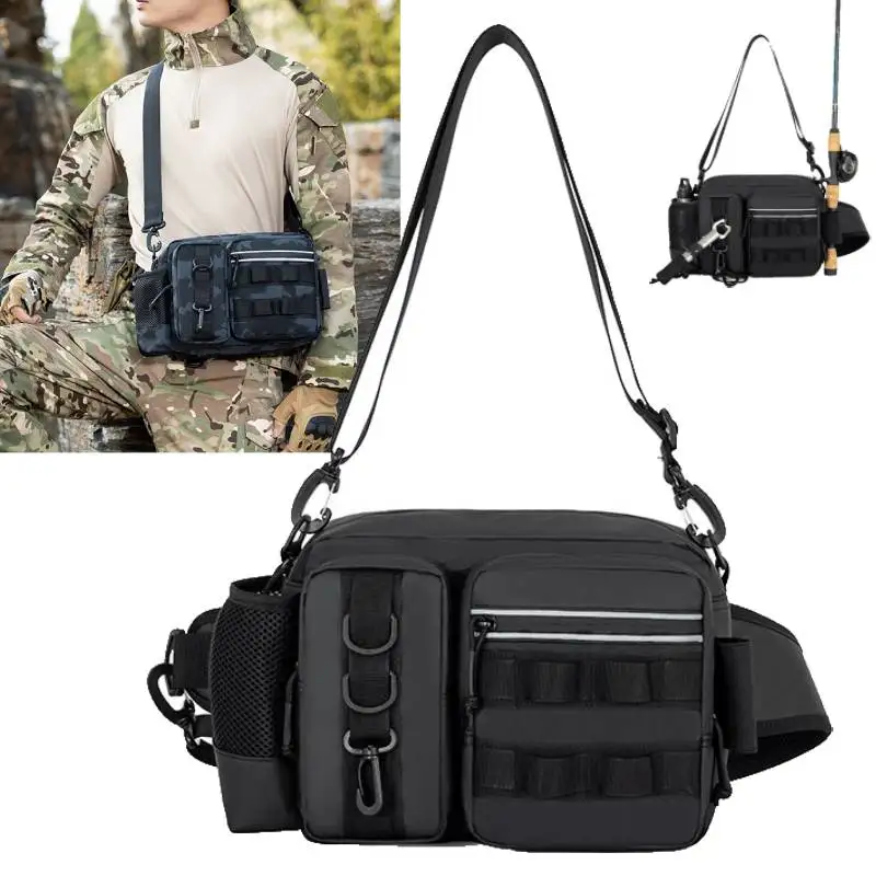 Luya Tactical Crossbody Chest Pack Large Capacity Camouflage Waist Pack Men Multifunctional Fishing Gear Portable Storage Fishing Rod Bag