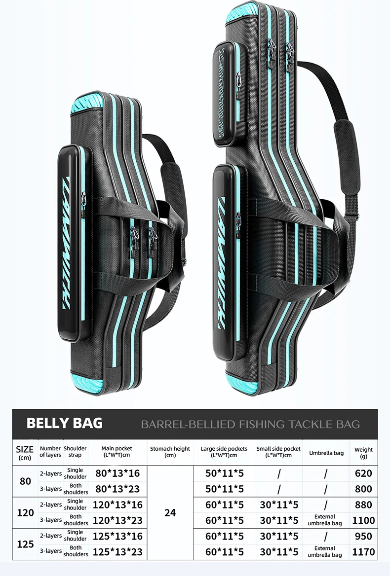 Bolsa de pesca de 2/3 capas, 80cm-130cm, mochila de equipo de caña de pescar, almacenamiento grande, bolso multifuncional para entrenamiento deportivo al aire libre