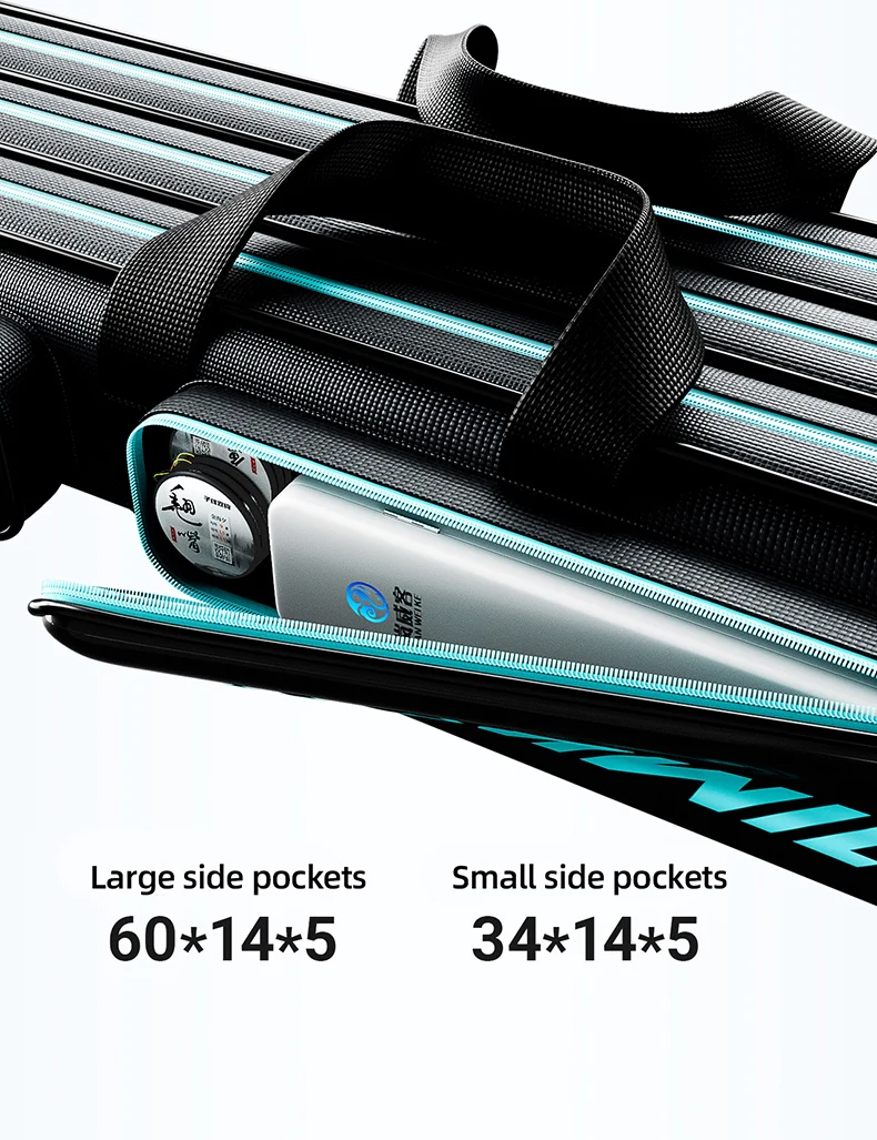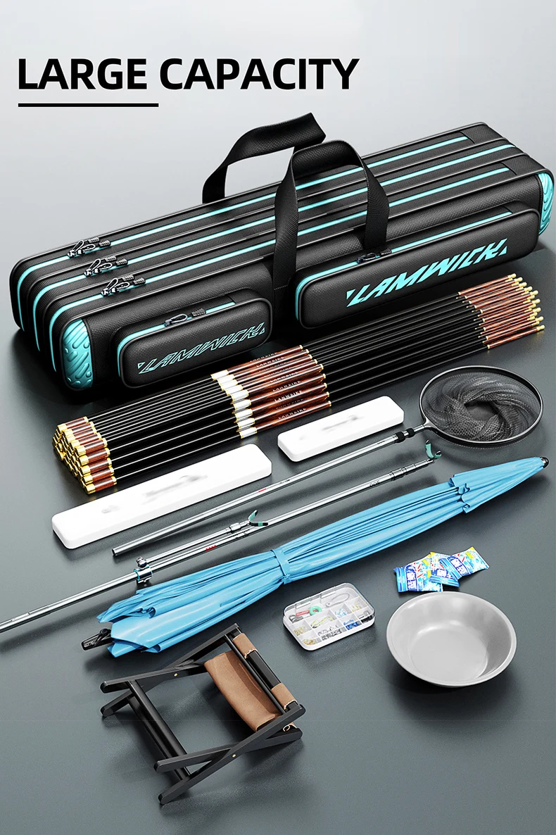 1.Gran capacidad y diseño multicapa, esta bolsa para caña de pescar ofrece un amplio espacio de almacenamiento para todo su equipo.