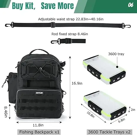 Bolsa de pesca al aire libre Goture, caja de aparejos 2 × 3600 y combinación de bolsa impermeable multifunción de gran capacidad, para bolsa de aparejos de acampada