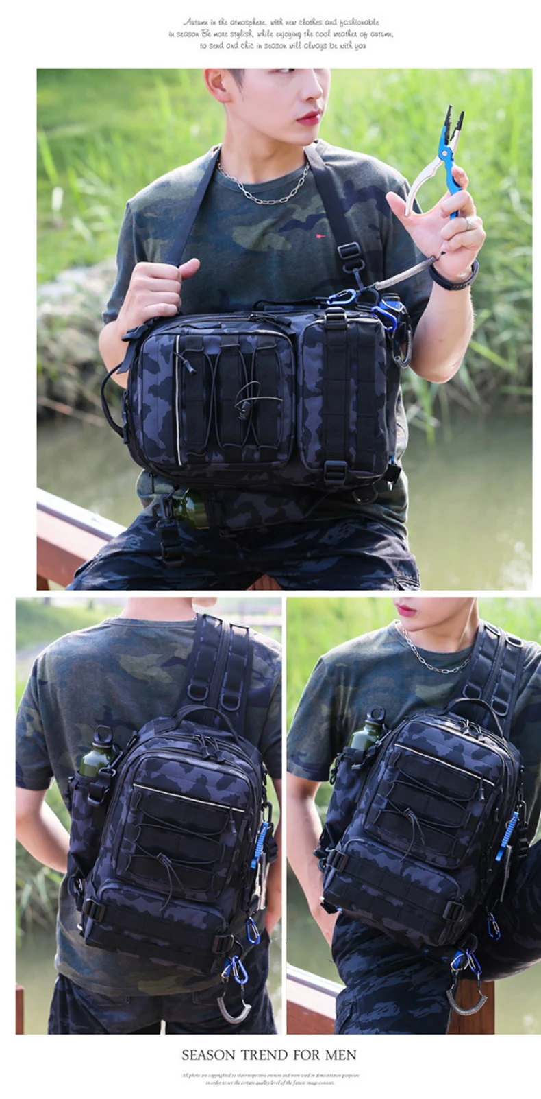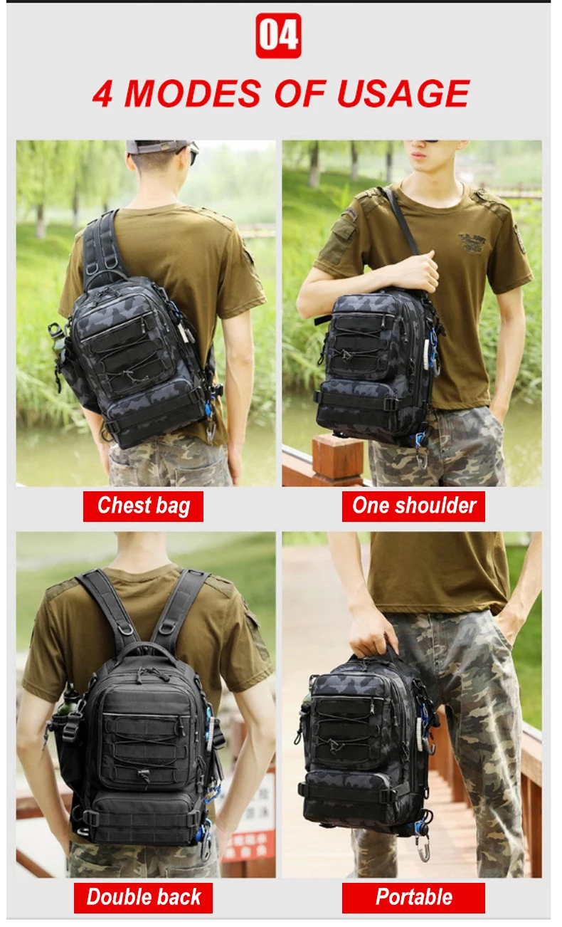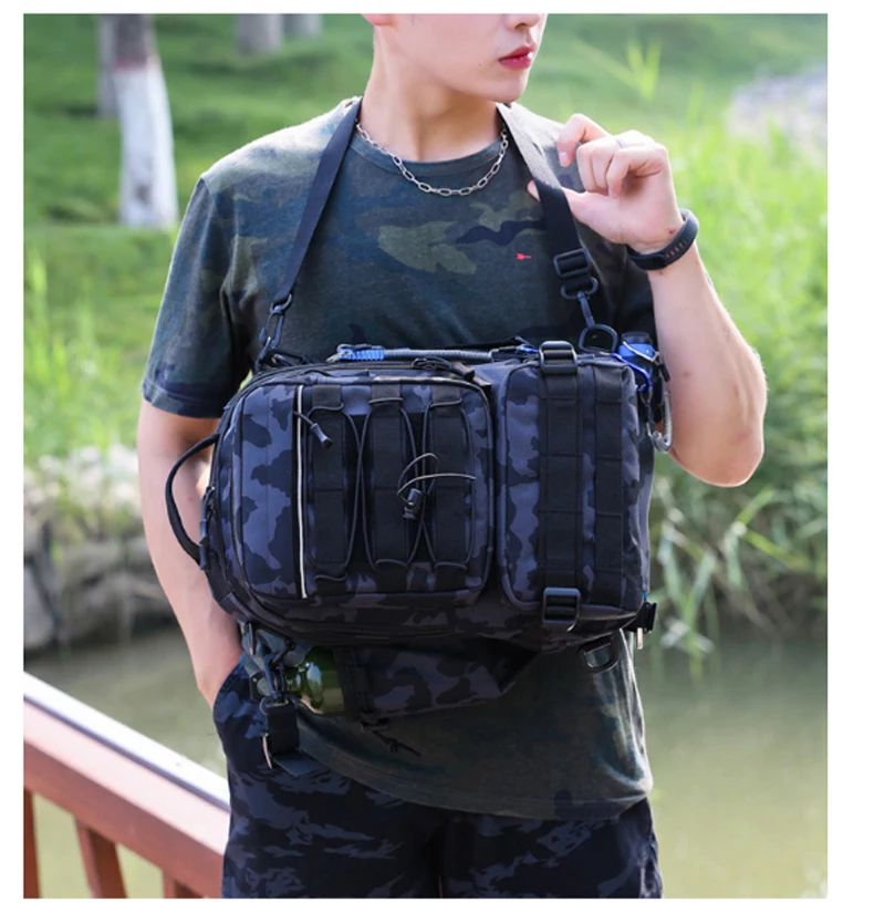 Bolsa de pesca al aire libre para hombre, mochila de Camping, escalada, caza, viaje táctico, impermeable, caja de caña de pescar, X175G