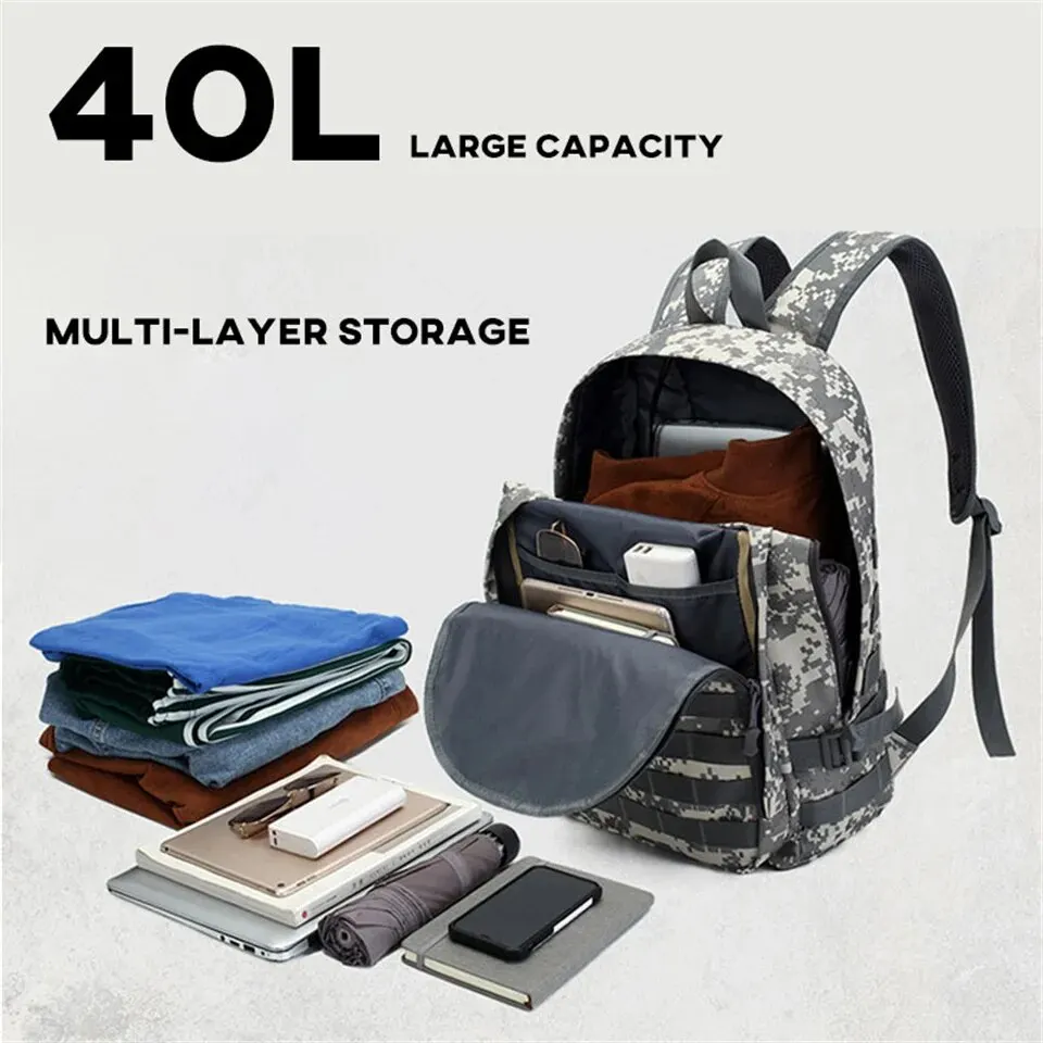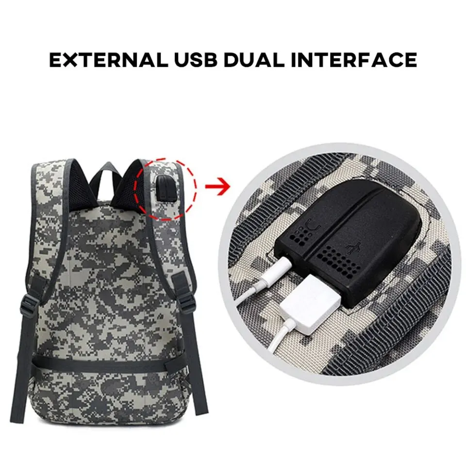 Esta mochila tiene una amplia gama de usos, alta capacidad y se puede utilizar para pescar, acampar y viajar. Y está hecho de tela Oxford, que es resistente al desgaste y práctica, impermeable. Hay dos interfaces USB externas, que son convenientes para cargar y usar equipos electrónicos durante el viaje.