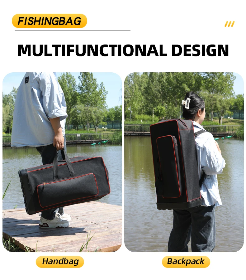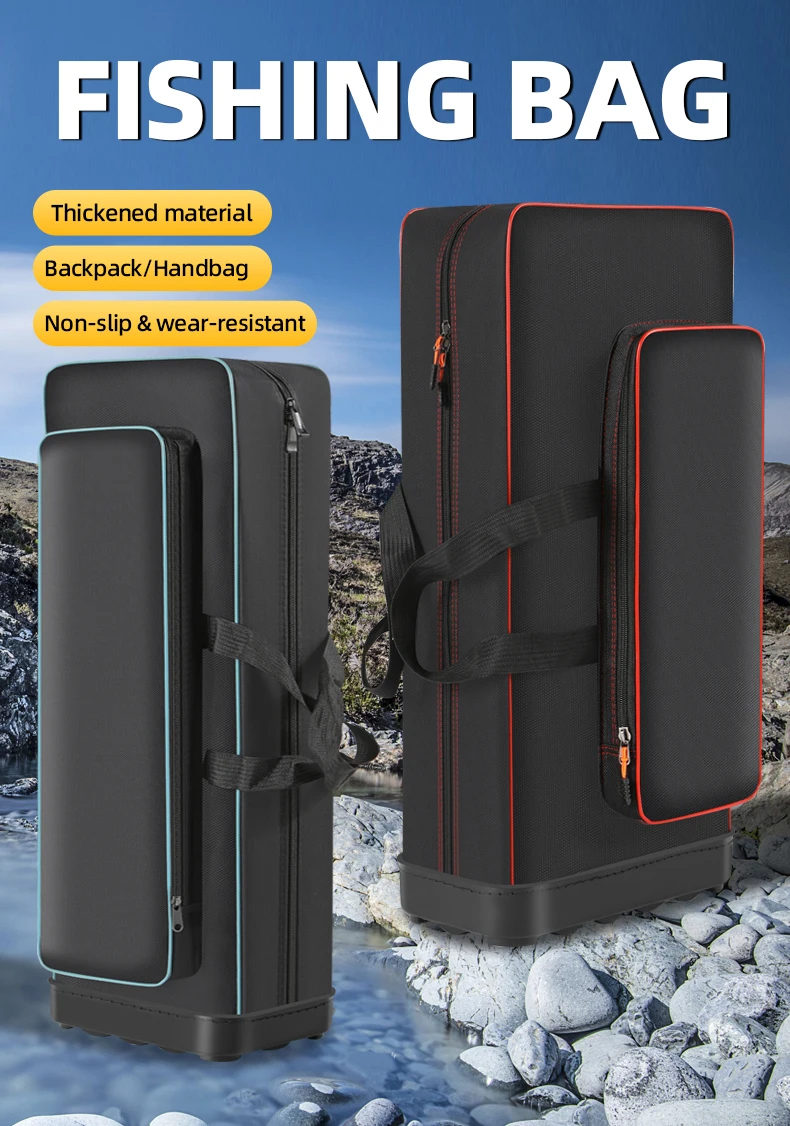 Bolsa de pesca de gran almacenamiento para viajes al aire libre, entrenamiento, senderismo, Camping, mochila, Base de carcasa dura, bolsa de equipo de varilla multifuncional