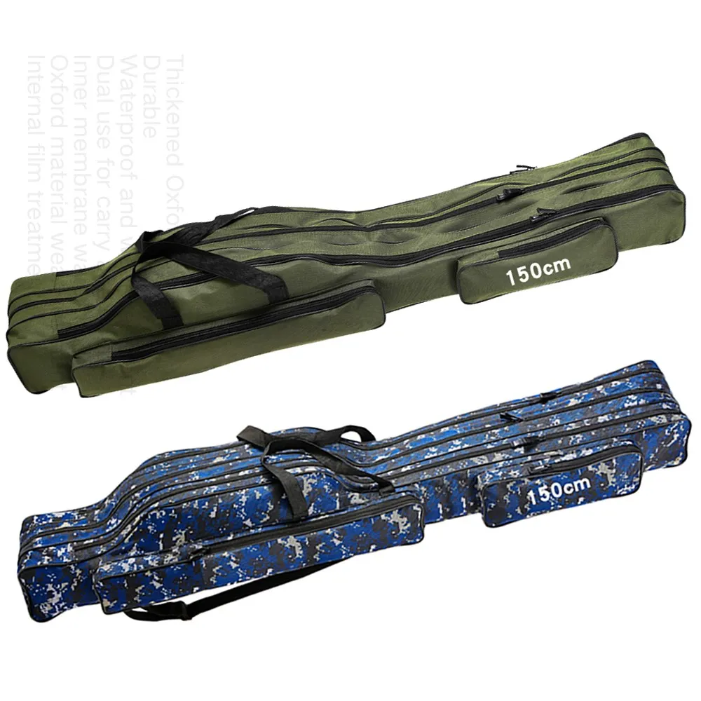 Bolsa de pesca, carrete de caña, señuelo, herramienta de poste, 2/3 capas, equipo de pesca impermeable, aparejos, bolsa de almacenamiento de gran capacidad, 110/120/130/150CMPresentamos nuestra bolsa de pesca multiusos con gran capacidad y protección impermeable: ¡la opción perfecta para todas sus necesidades de pesca! Nuestra bolsa de calidad superior está hecha de tela Oxford gruesa de alta calidad y cuenta con un forro de película impermeable en el interior y una capa de tela Oxford impermeable en el exterior, lo que la hace altamente resistente a la abrasión, agua y humedad.