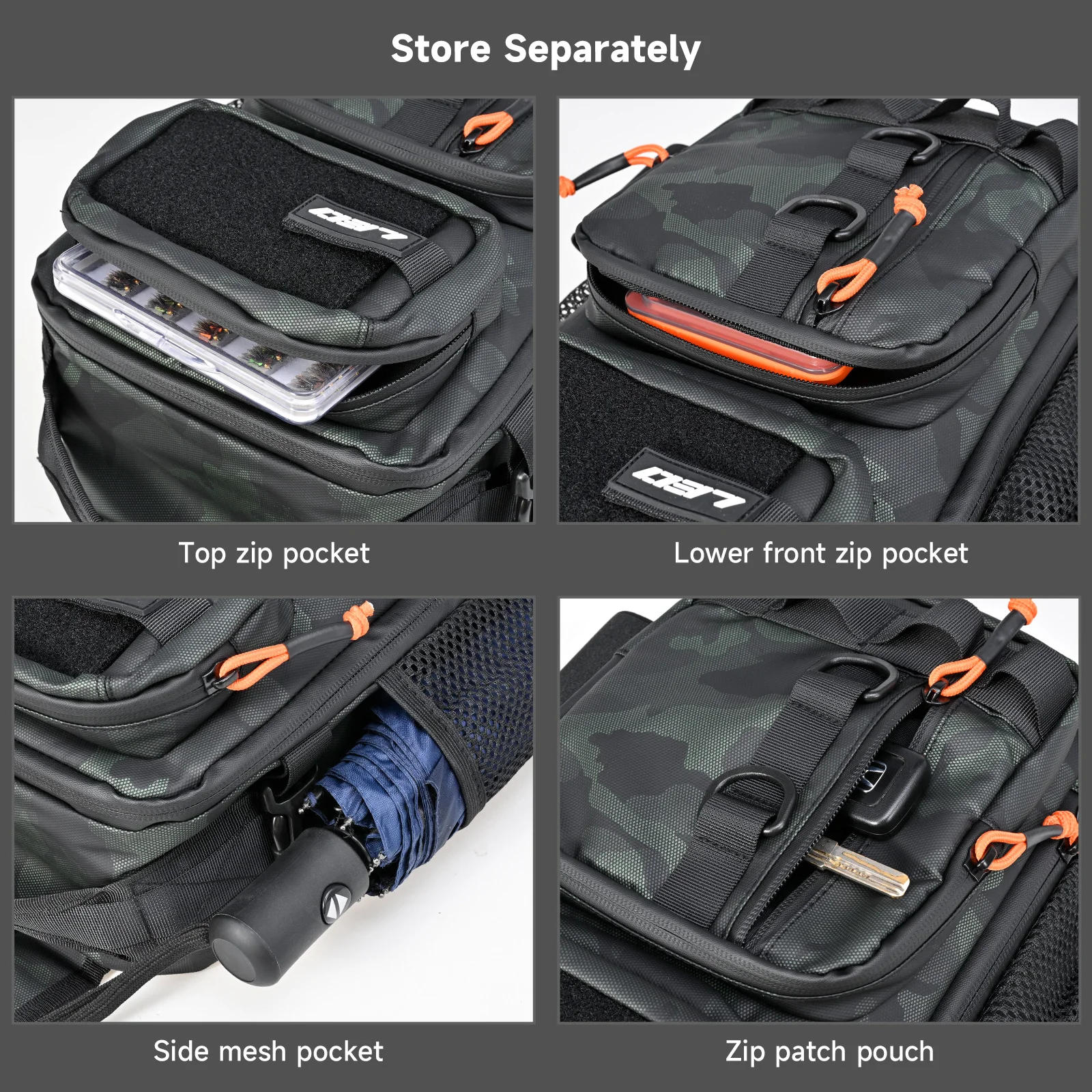 01: Una bolsa de almacenamiento de pesca profesional y un diseño de gran capacidad que almacena fácilmente carretes de pesca y otros aparejos de pesca.