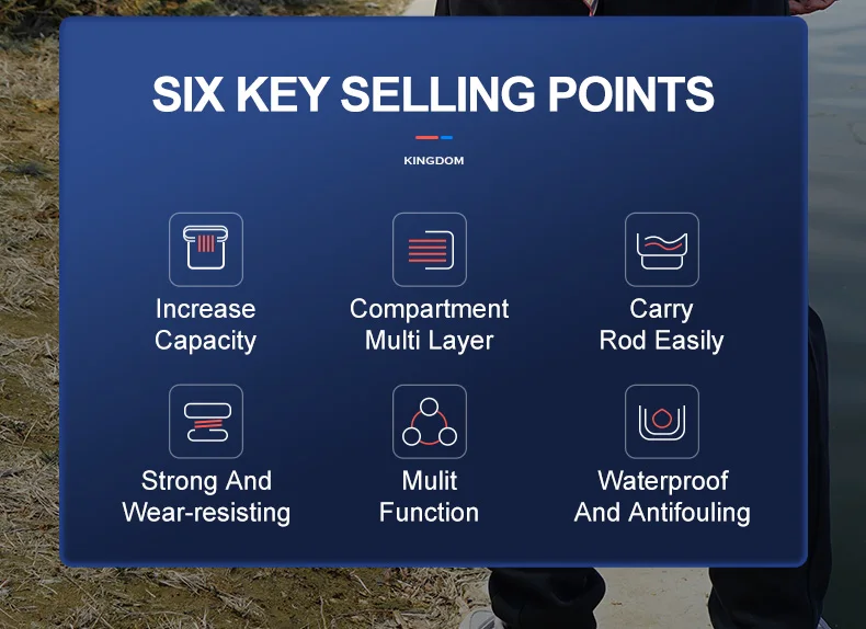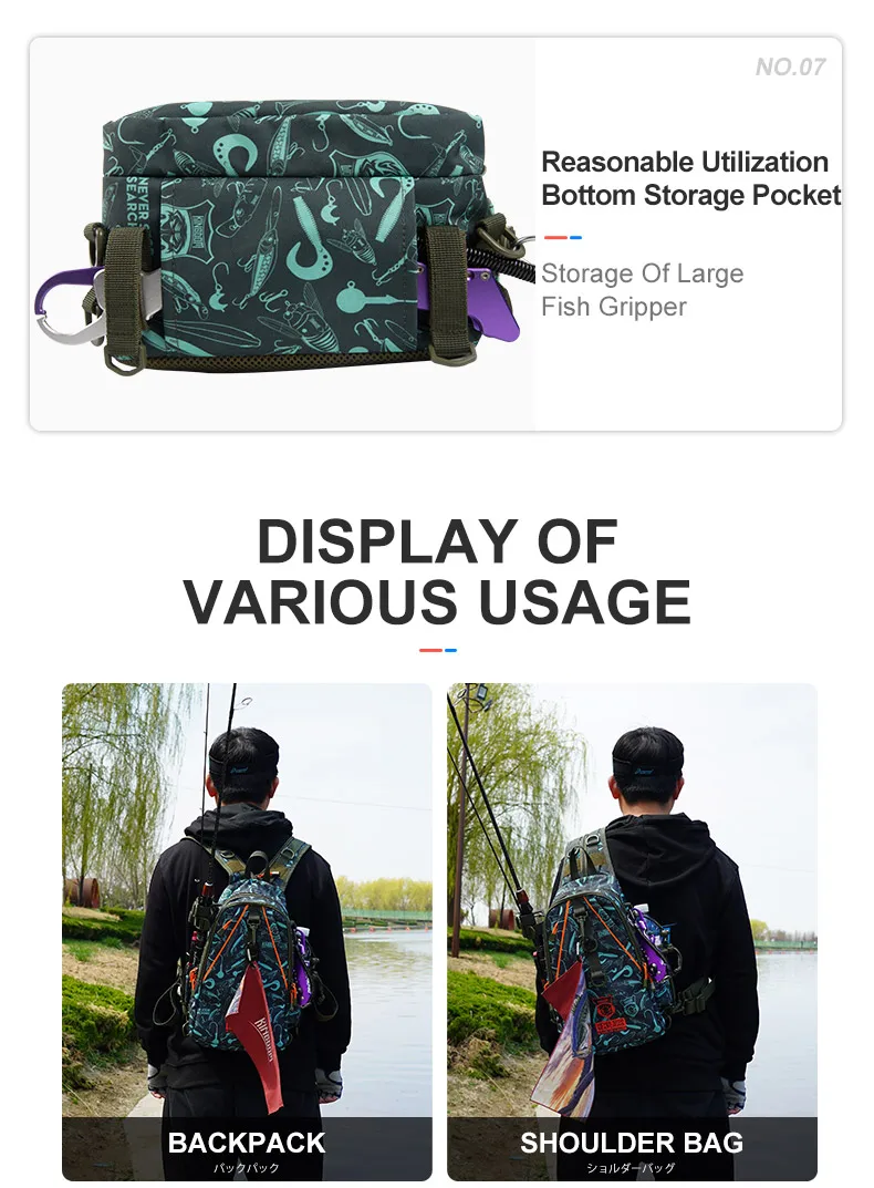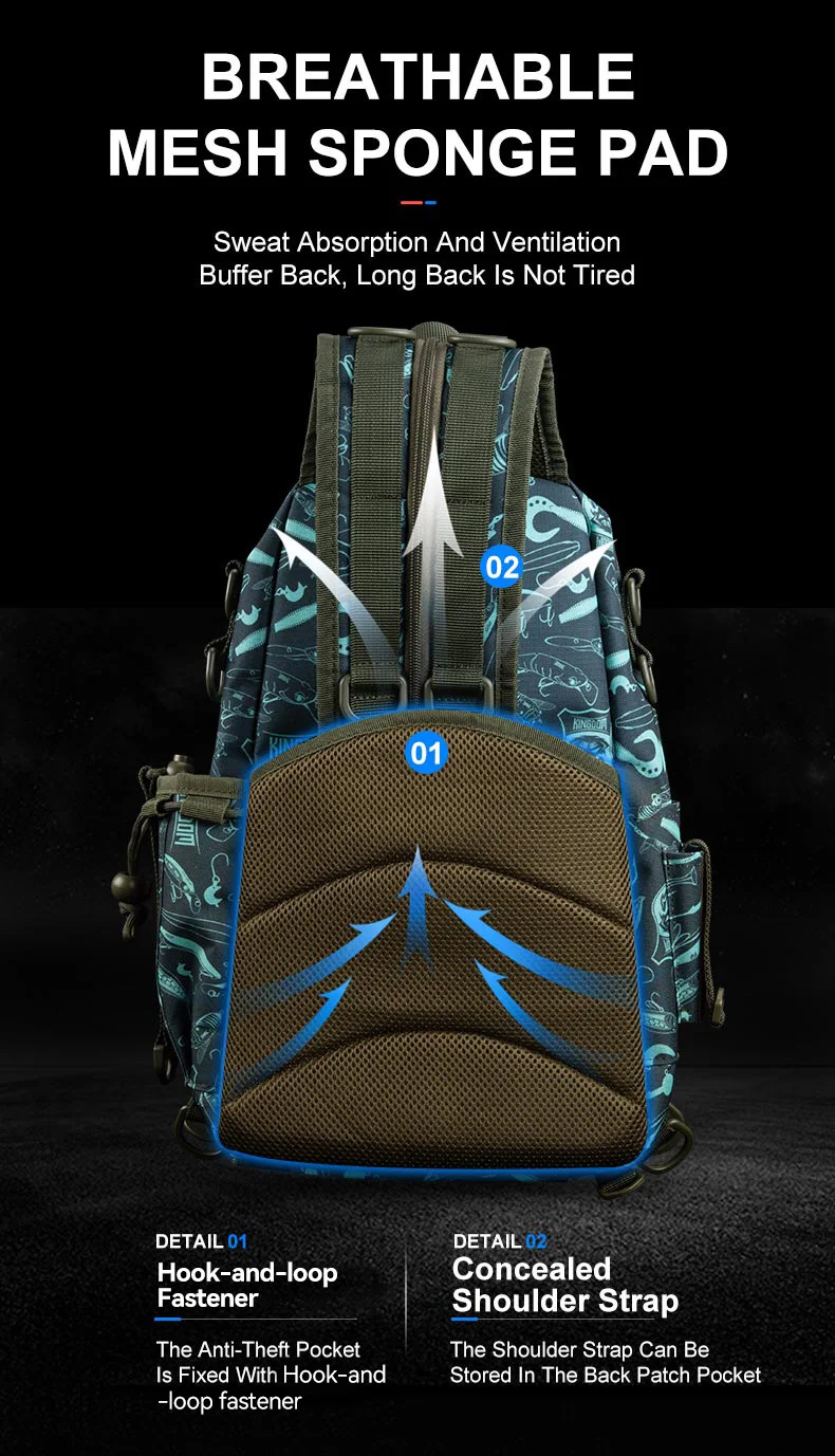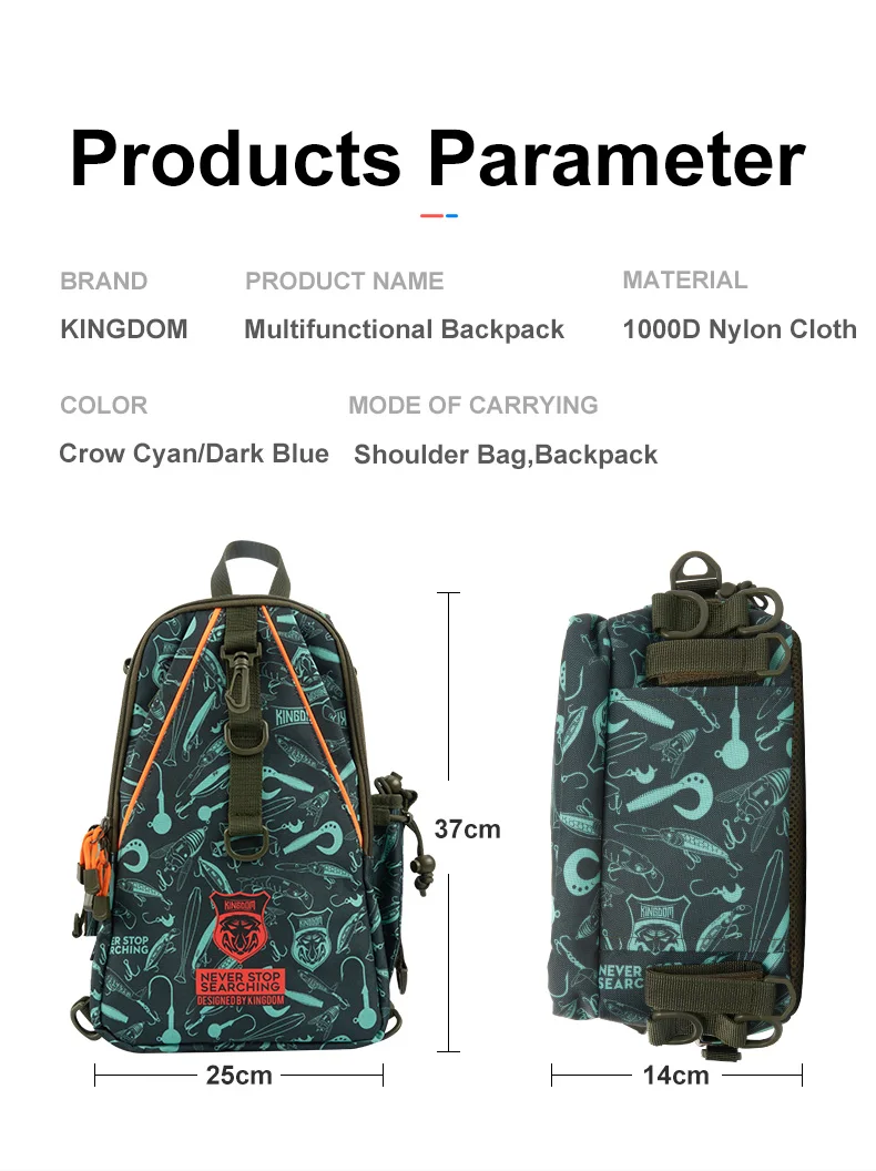 Bolsa de pesca Kingdom, bolsa deportiva portátil de 39x24x16,5cm, mochila para exteriores, carrete de pesca, caja de señuelo, bolsa de pesca, aparejos de pesca