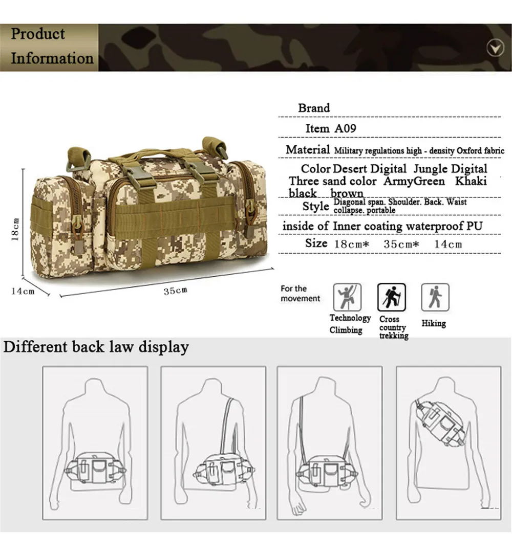 Bolsa de pesca de liquidación, generación de bolsillos tácticos multifuncionales para exteriores, bolsillos para montar en deportes de escalada de montaña