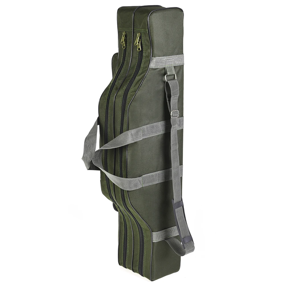 This fishing rod bag may be the simplest bag to hold you fishing rods, reels and other tackles. It has two main big compartments, exteriors pocket and 1 mesh pocket, which is very roomy to keep your fishing tackle neat and ready to go.