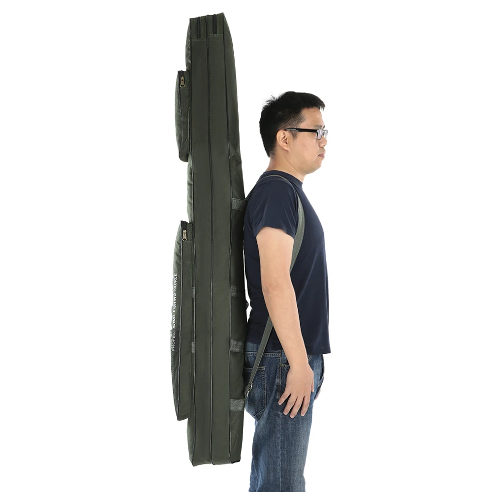 Notice: 100cm fishing bag only has 1 exterior pocket, 130cm, 150cm, 170cm, 190cm and 210cm have 2 exterior pockets.